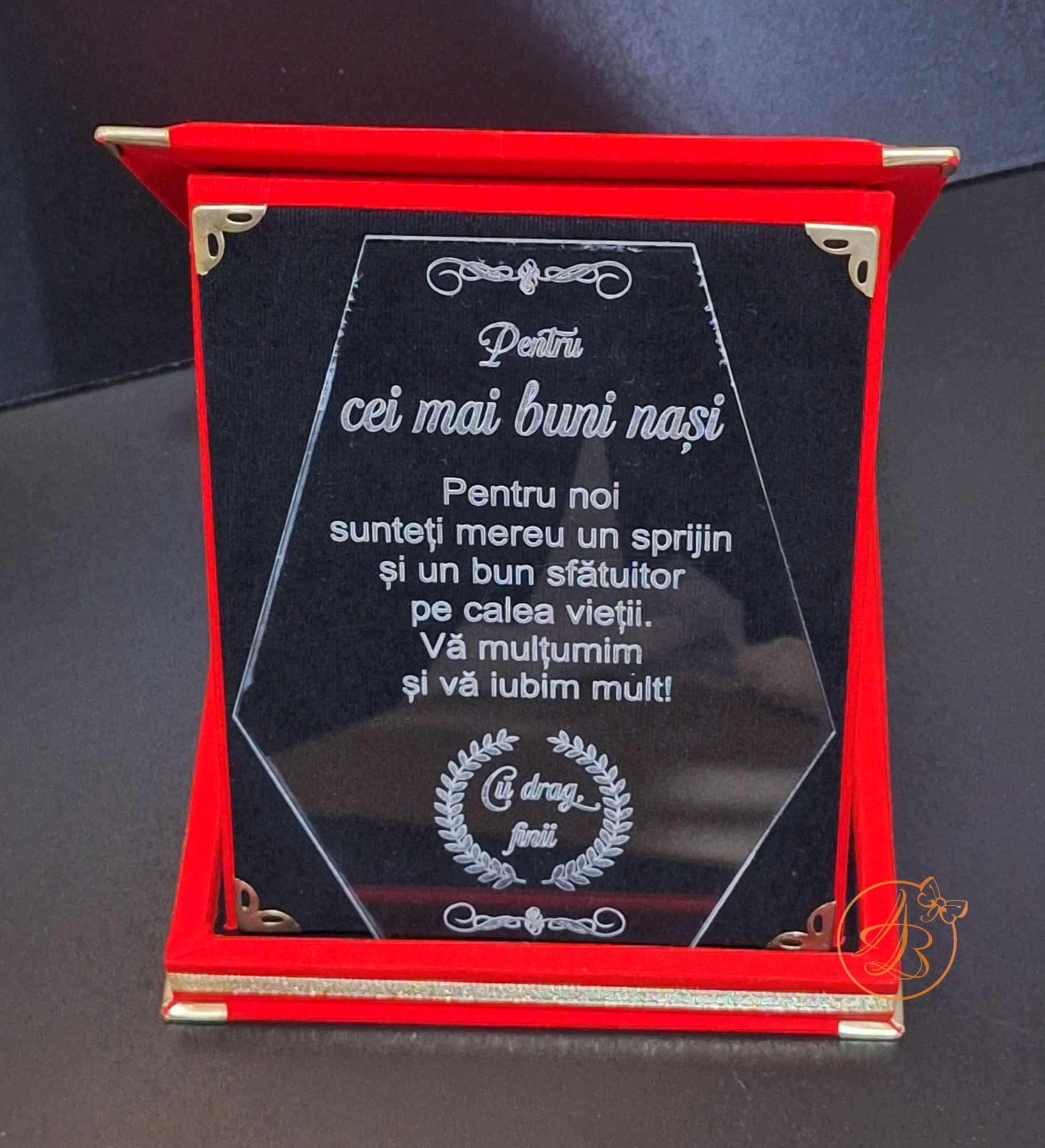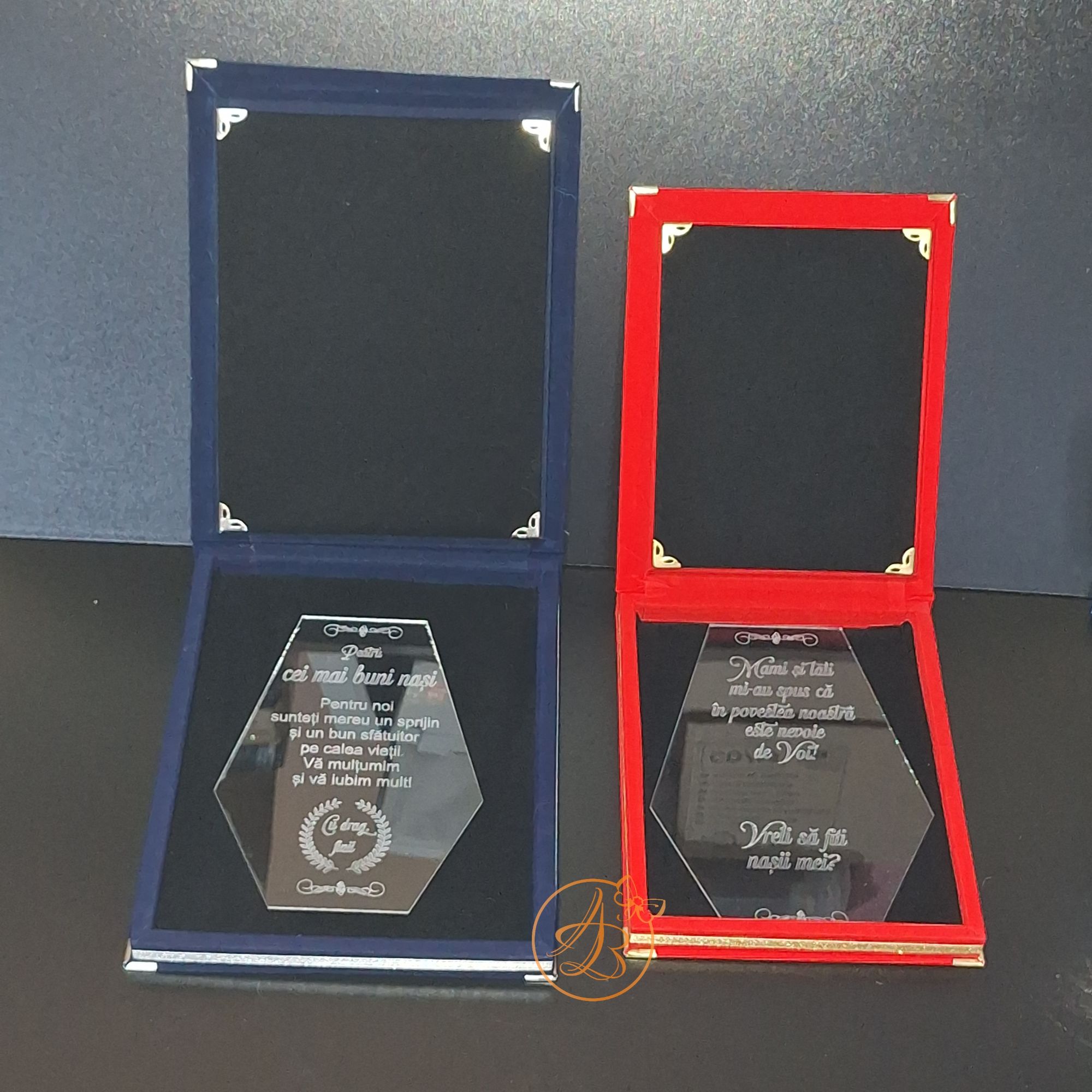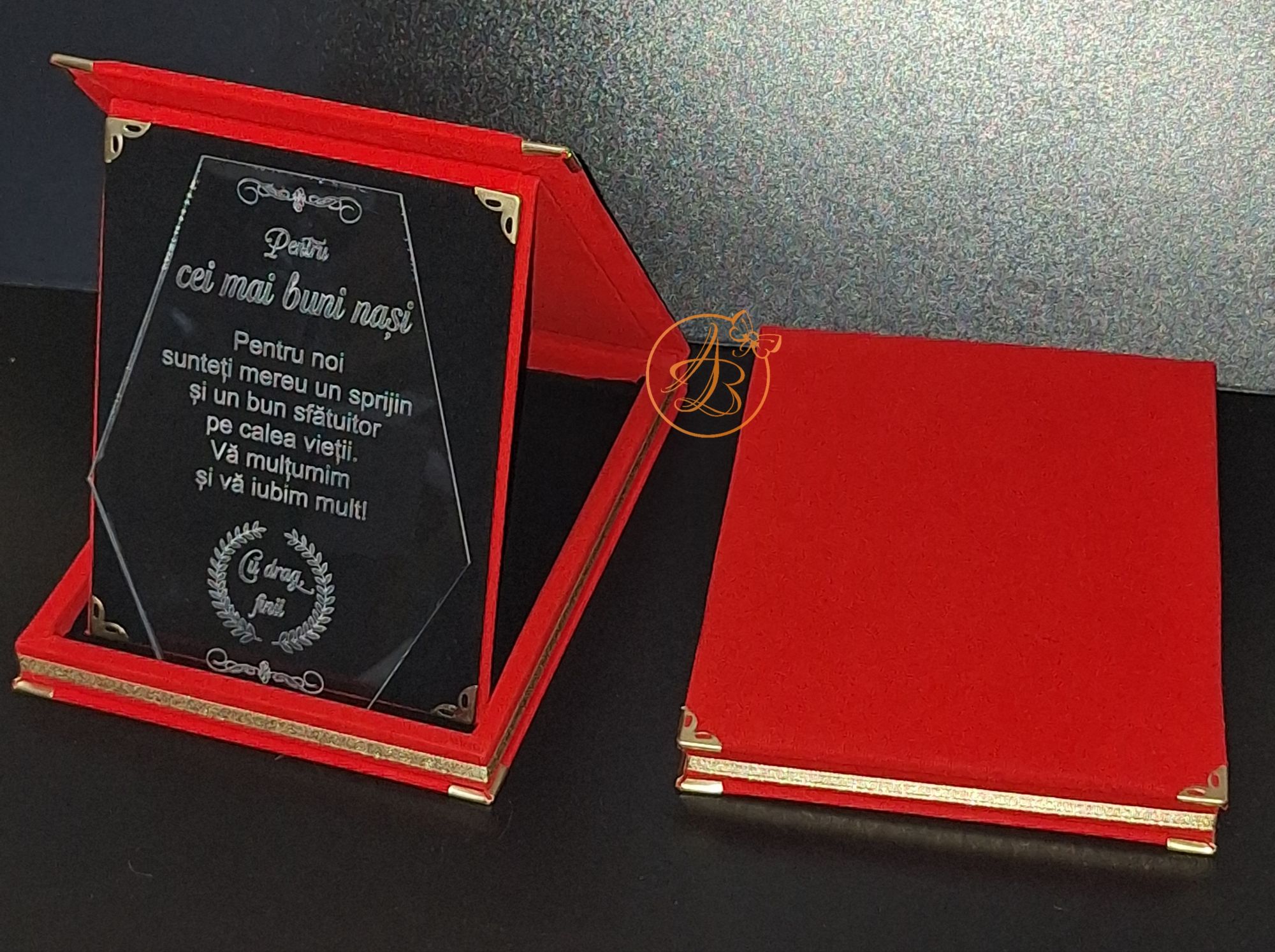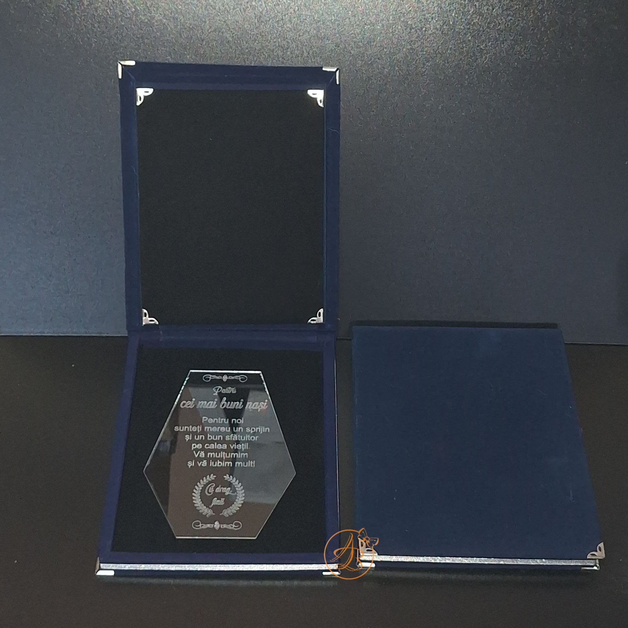 Trofeu elegant cu placa gravata, in cutie de lemn imbracata in catifea rosie sau albastra / Uncategorized / By Melinda