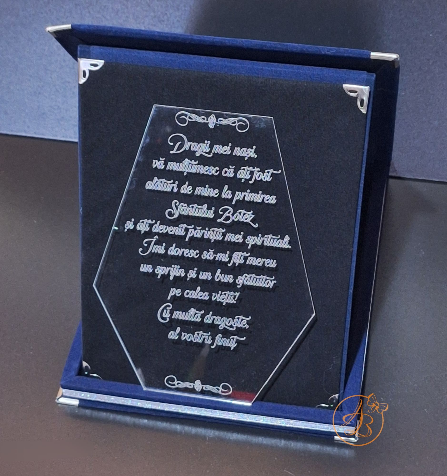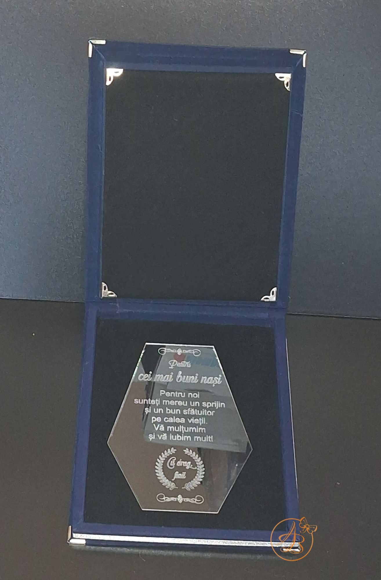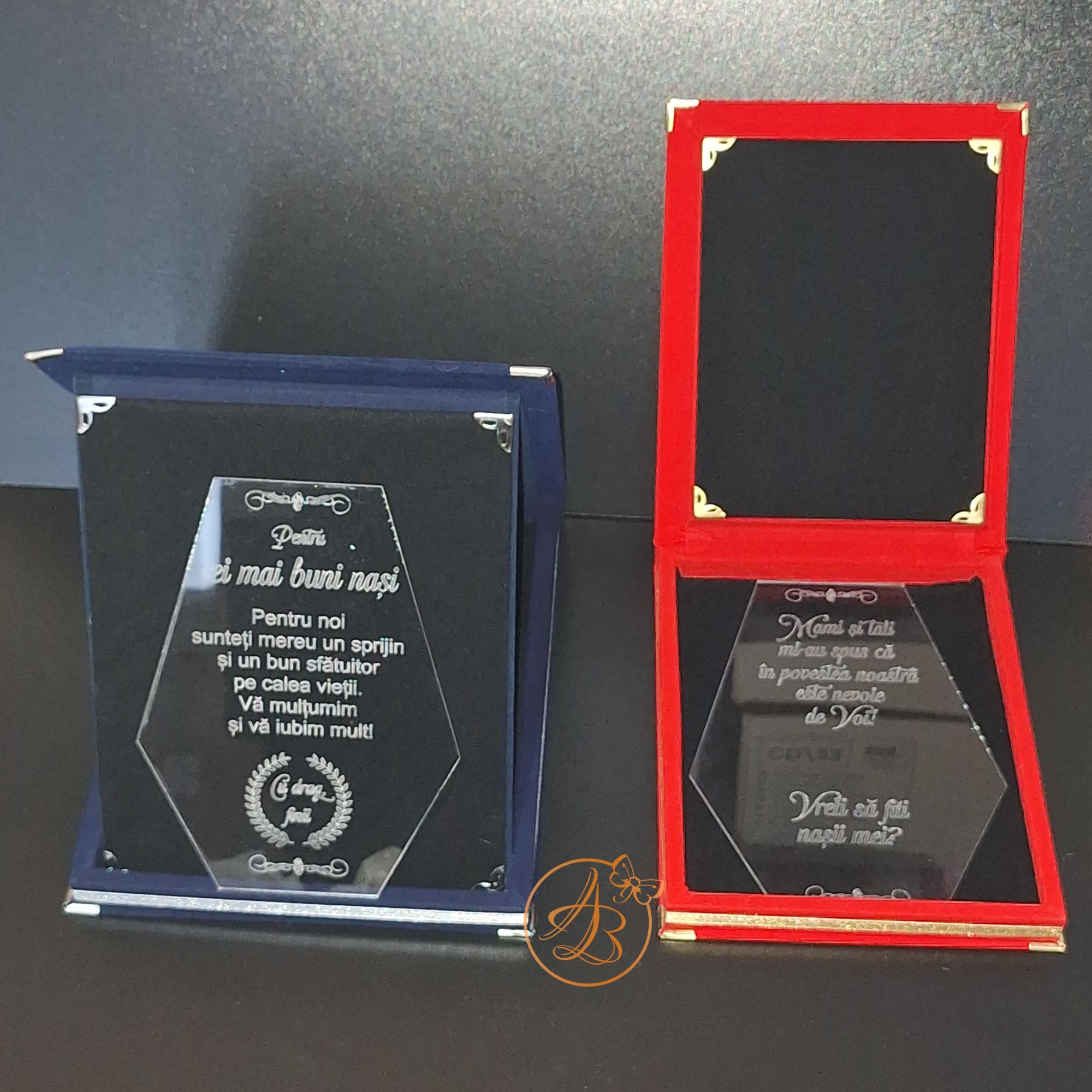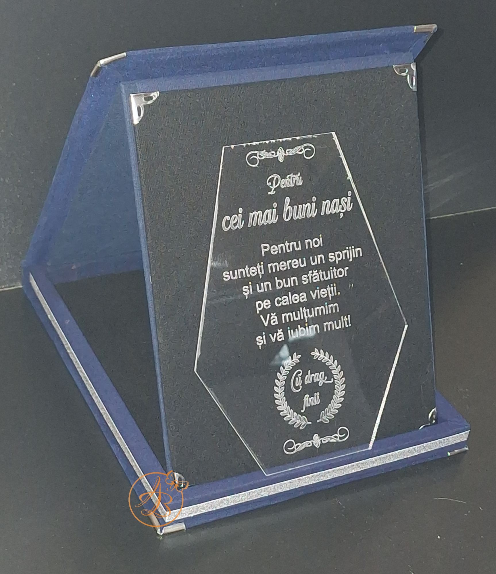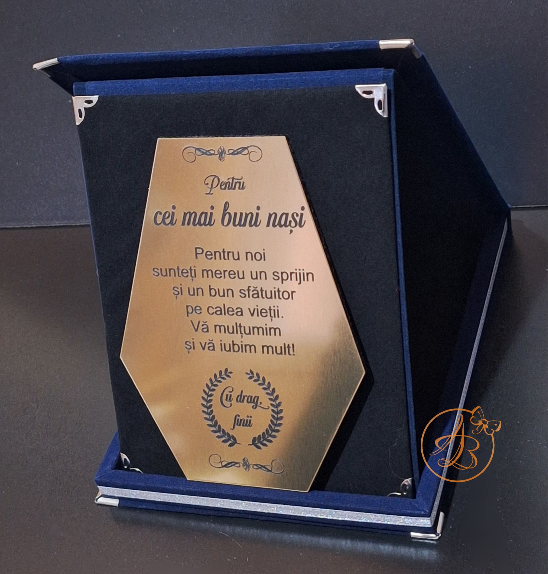 Trofeu elegant cu placa gravata, in cutie de lemn imbracata in catifea rosie sau albastra / Uncategorized / By Melinda