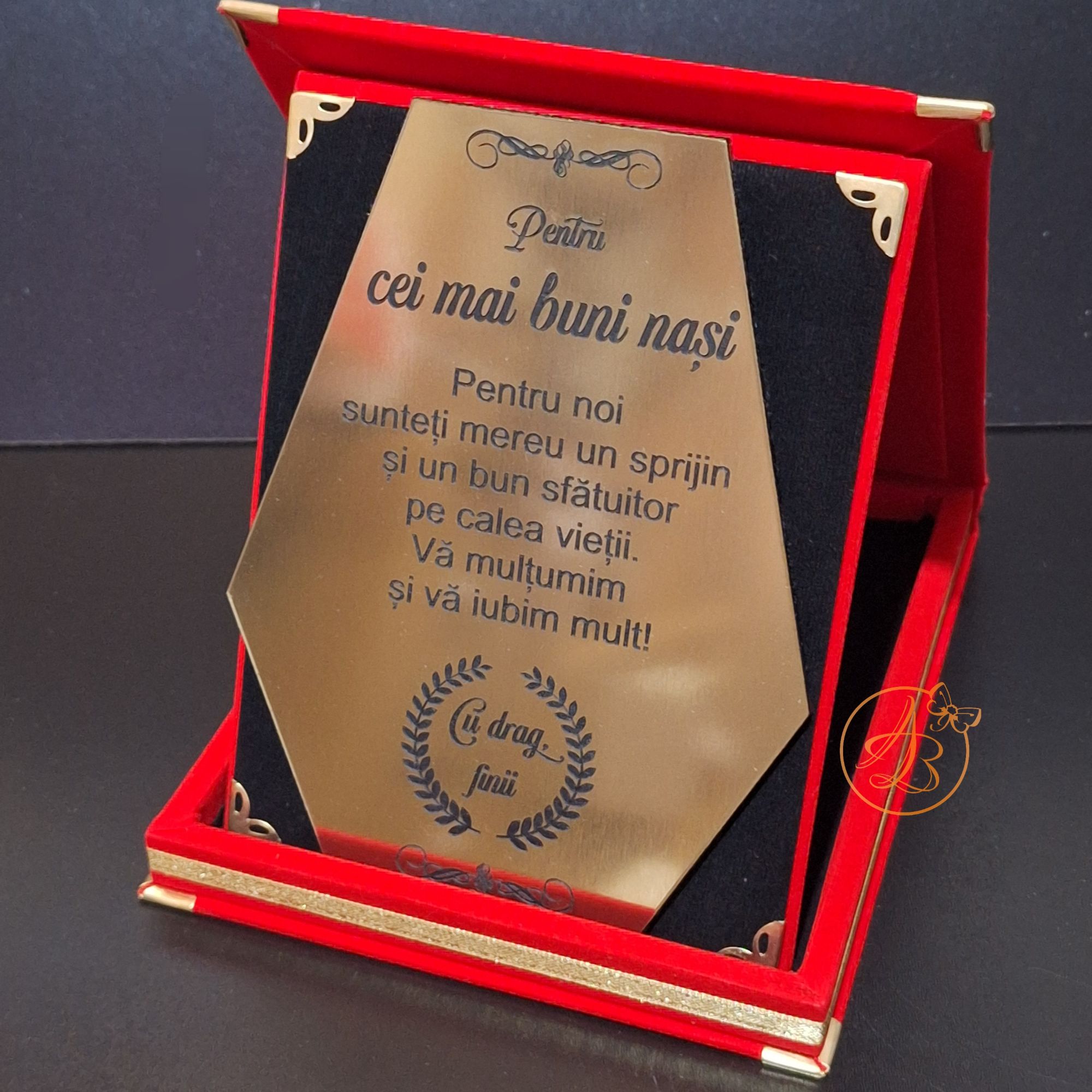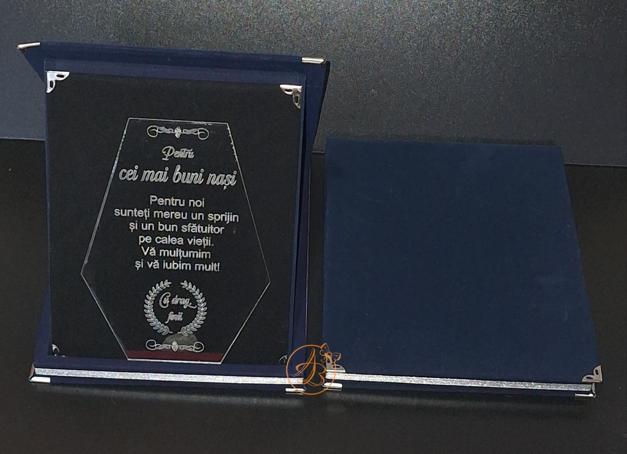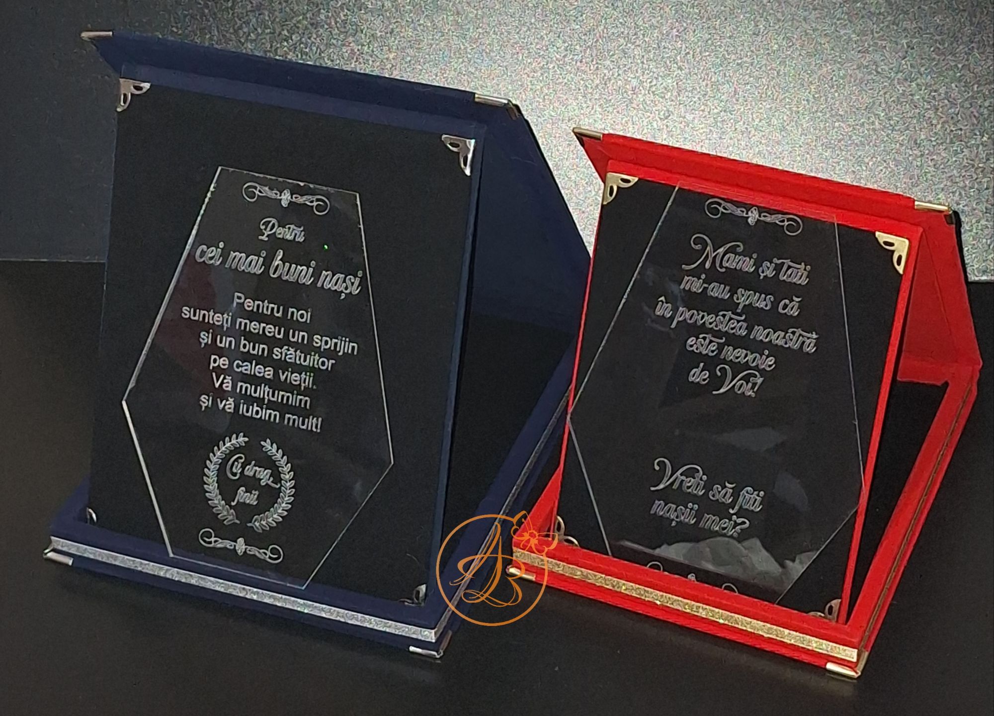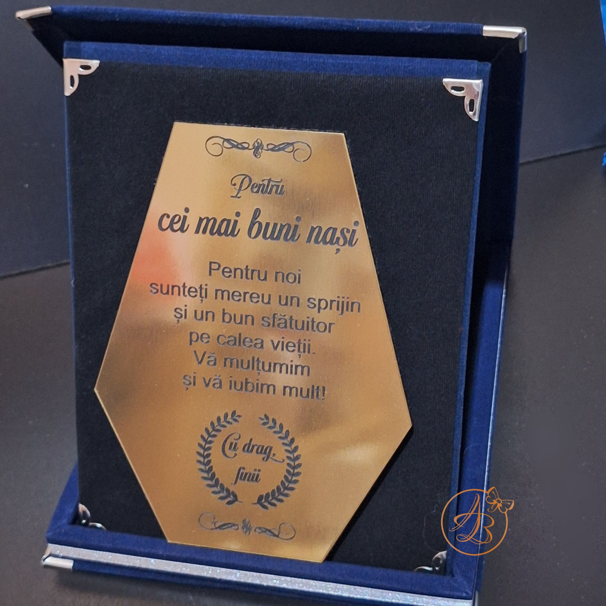 Trofeu elegant cu placa gravata, in cutie de lemn imbracata in catifea rosie sau albastra / Uncategorized / By Melinda