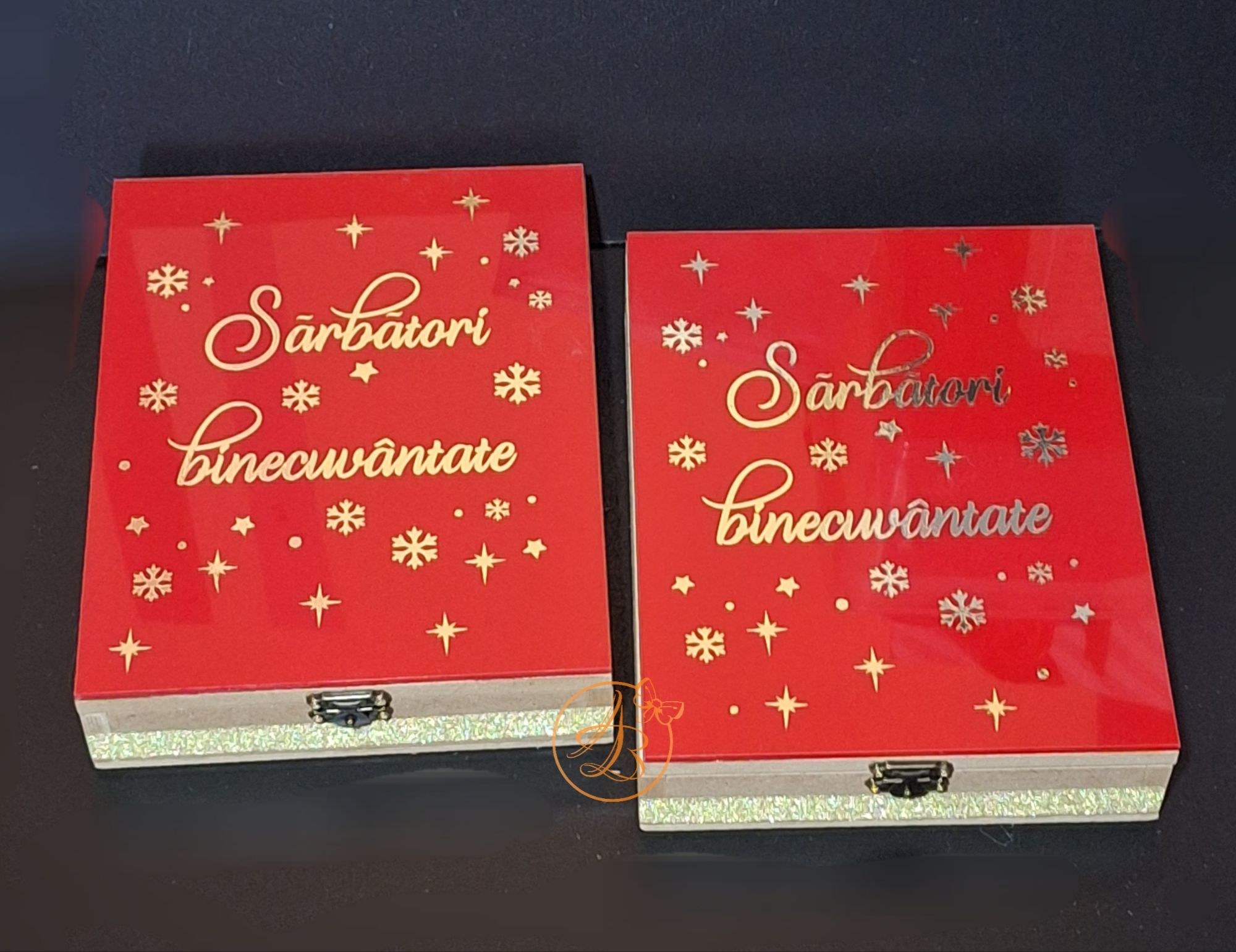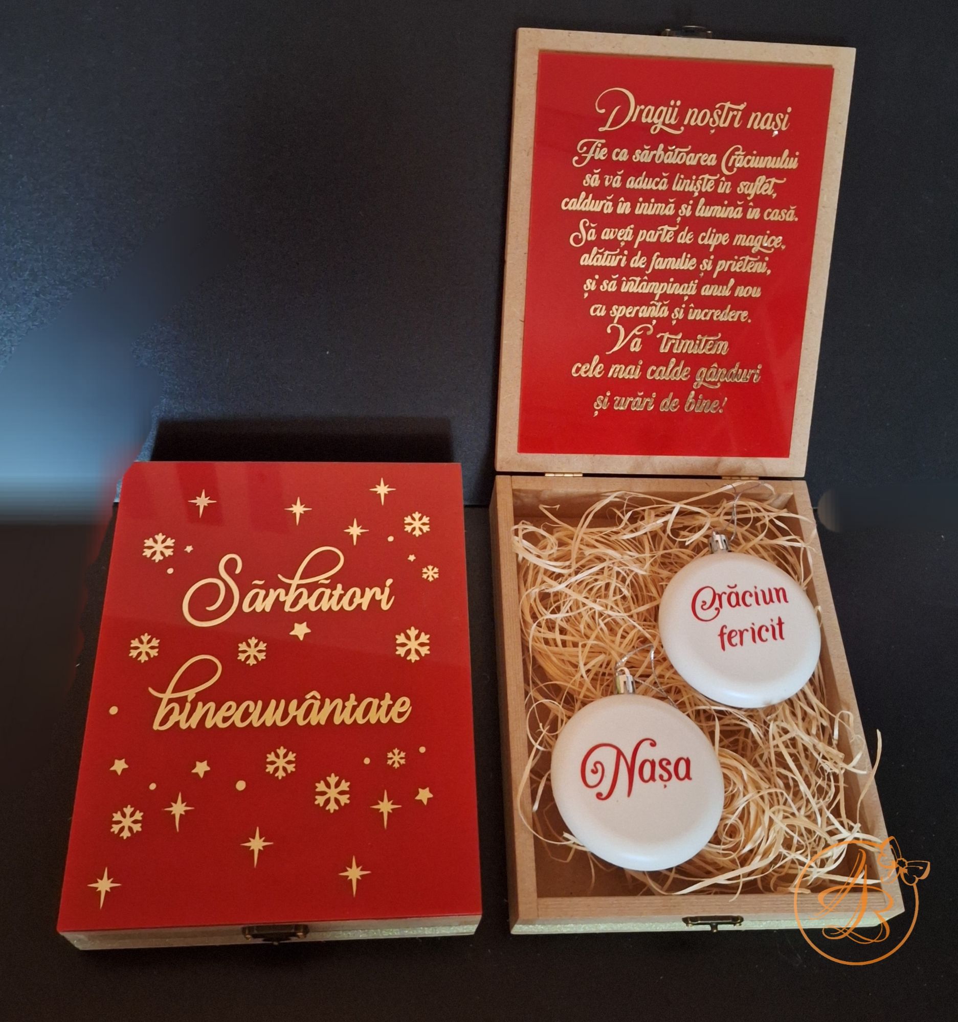Cutie eleganta cu placa plexiglass color si globulete personalizate