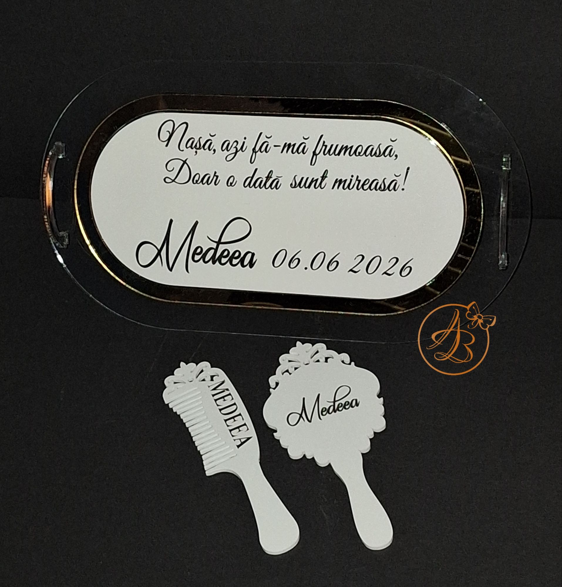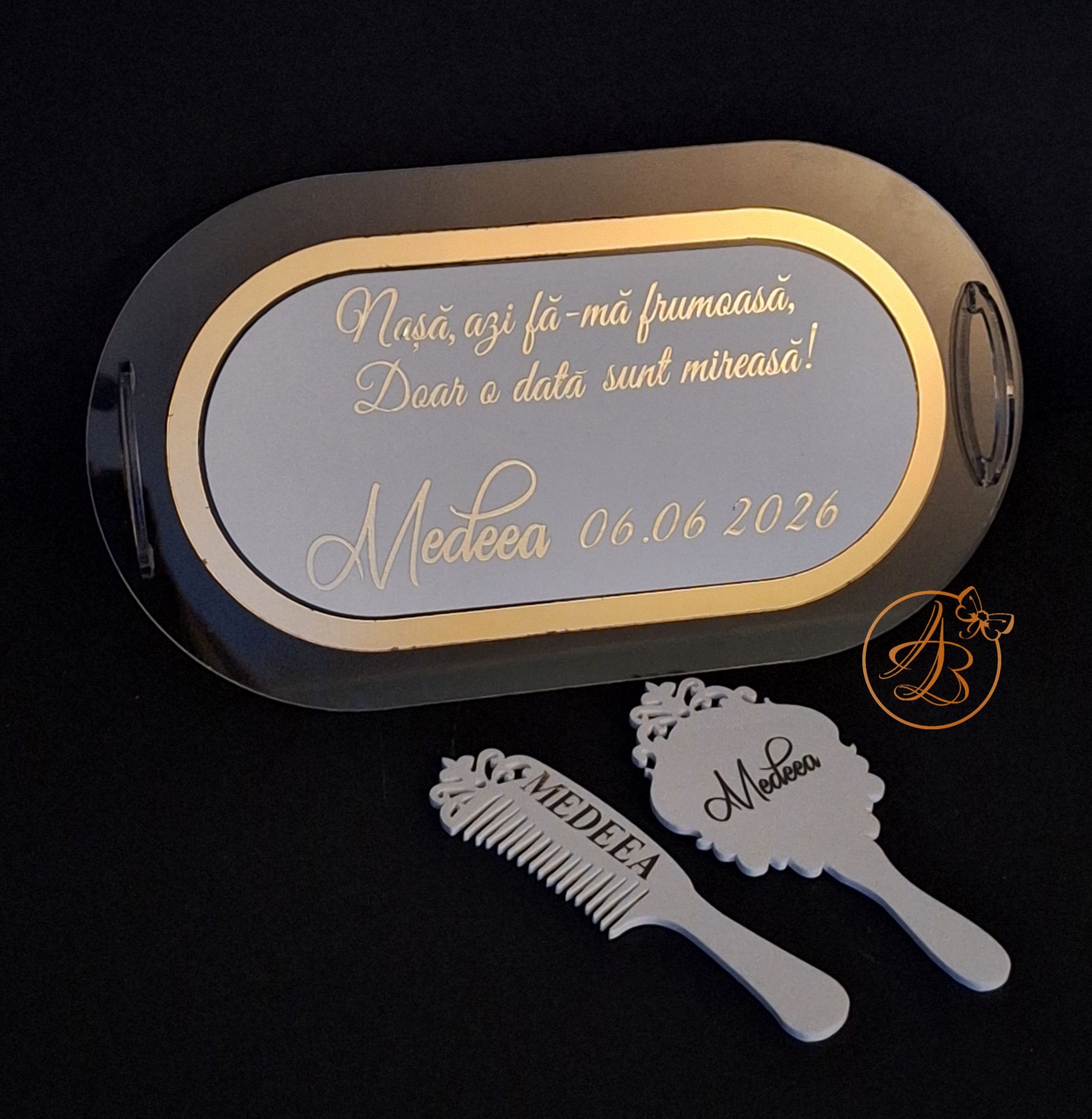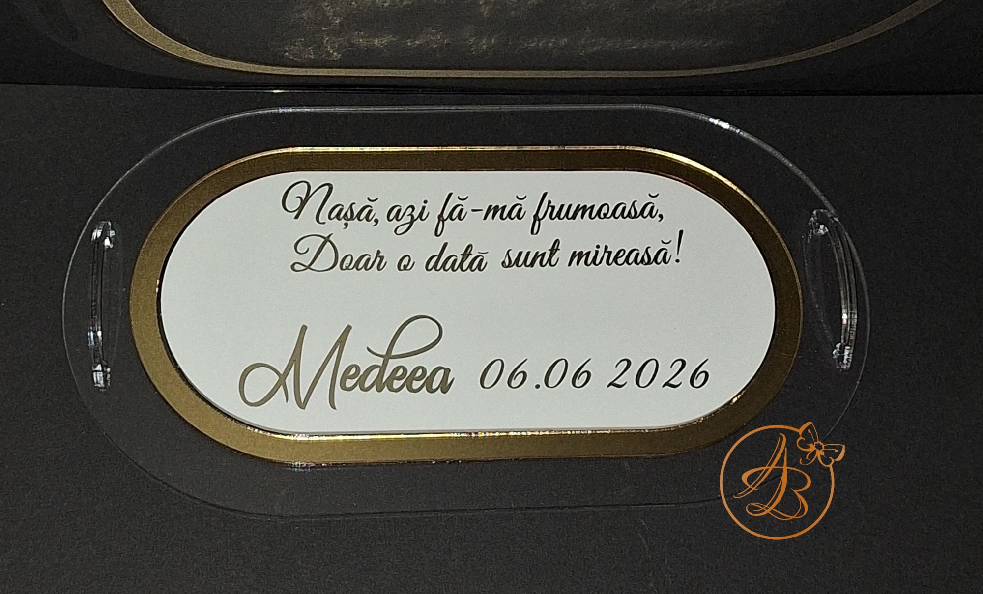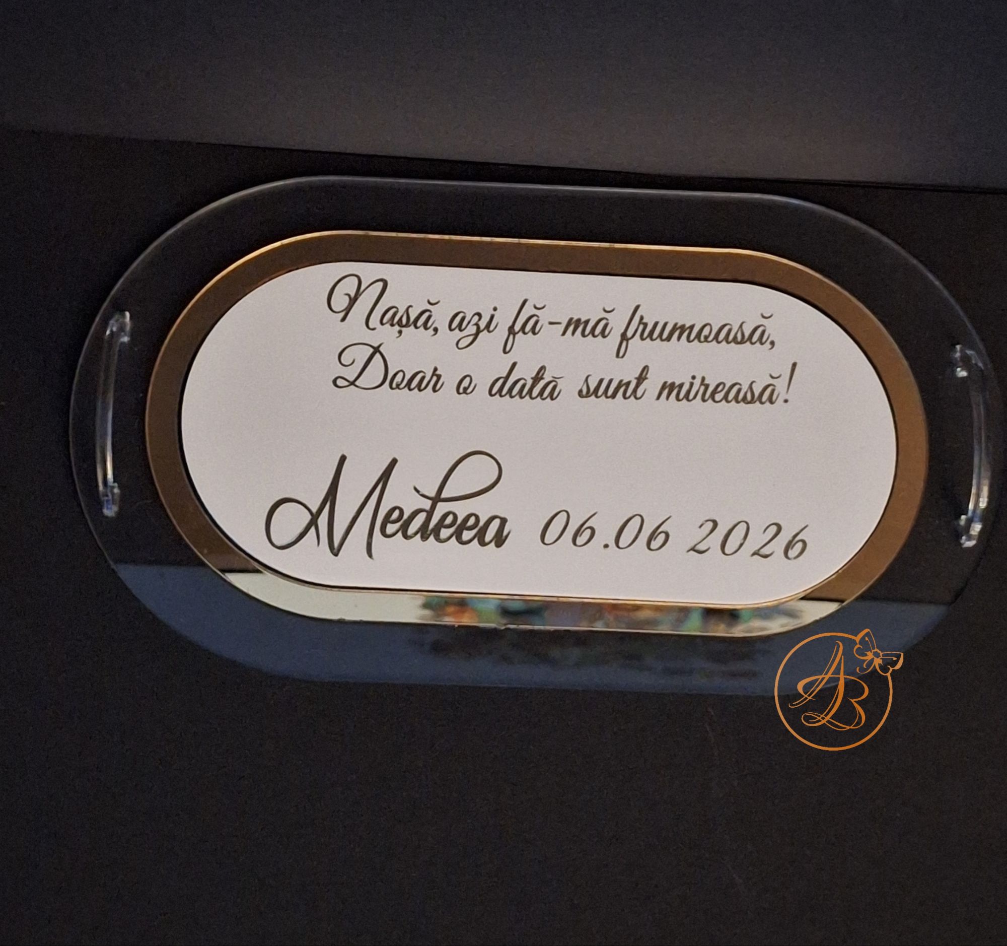 Tava miresei, tava mirelui, elegant din plexiglass si oglinda