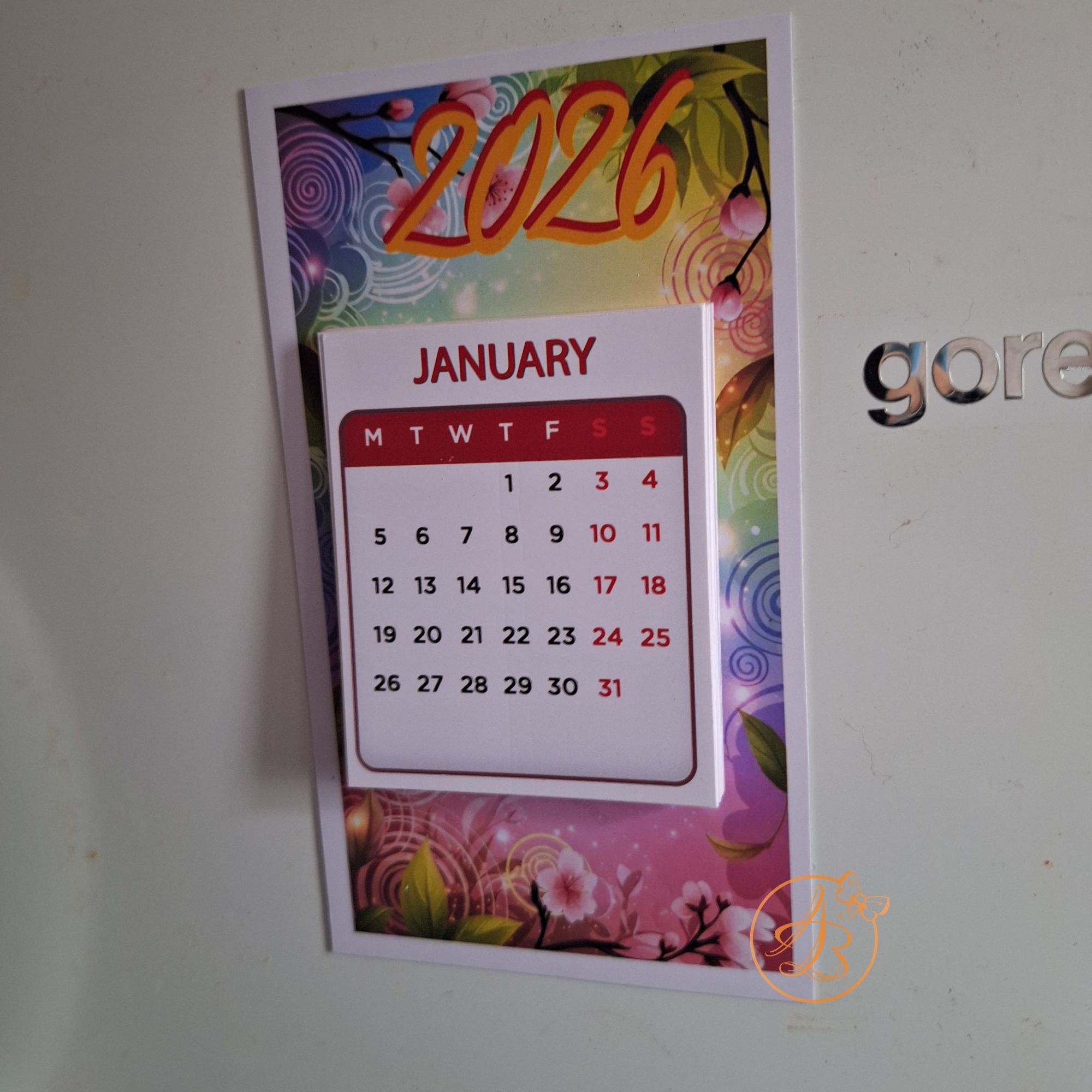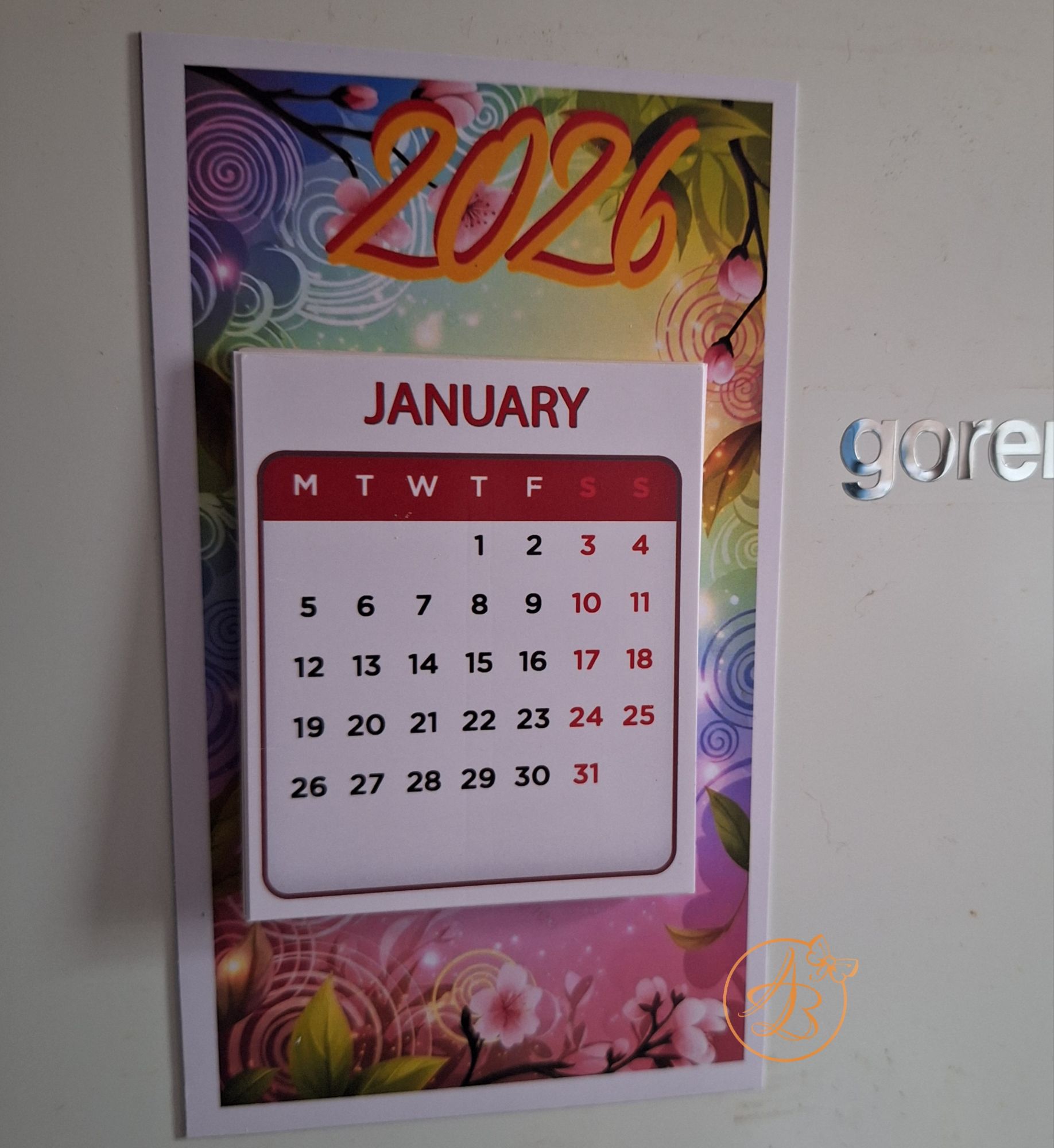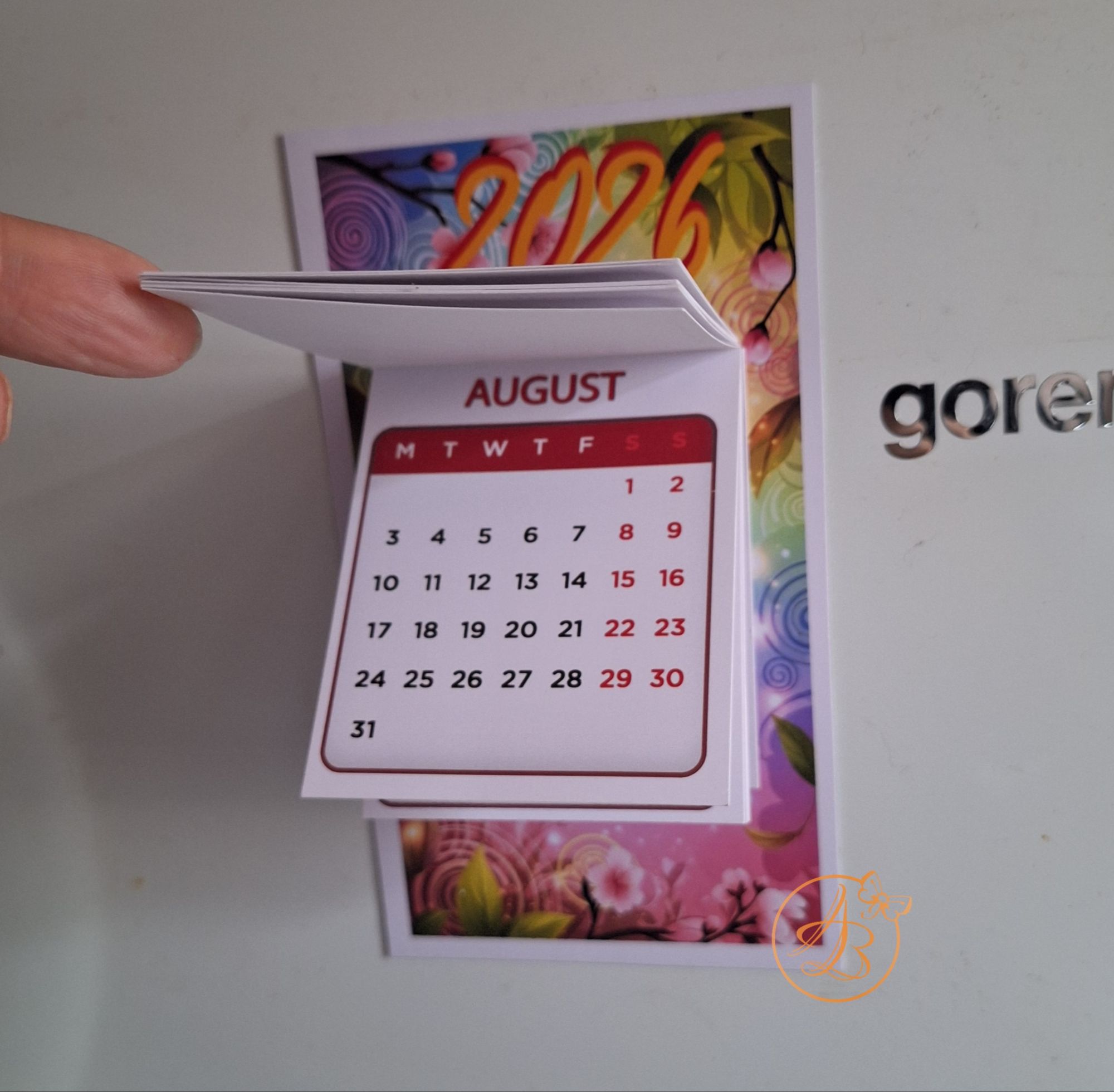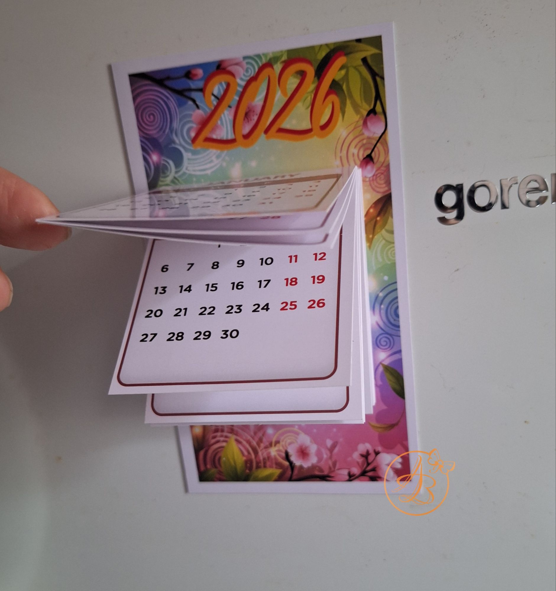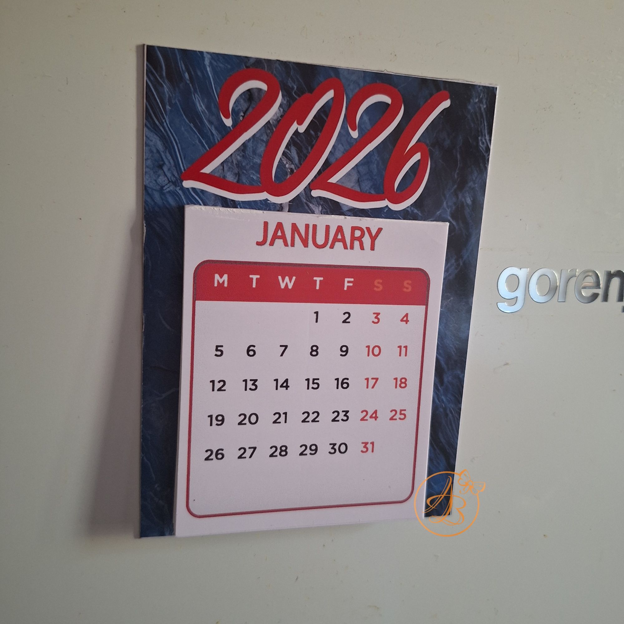 Calendar magnetic ce poate fi asezat pe frigider, sau orice suprafata din metal.