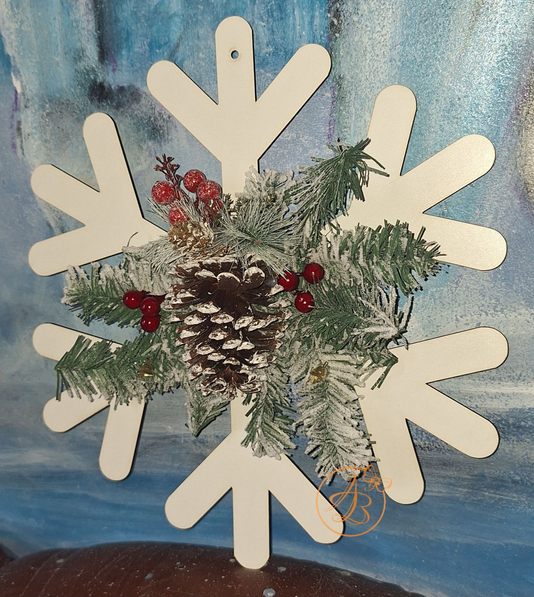 Baza este realizata din MDF  de 2,5mm, are forma de stea, cu diametru de 32cm, este decorata cu un con si accesorii.