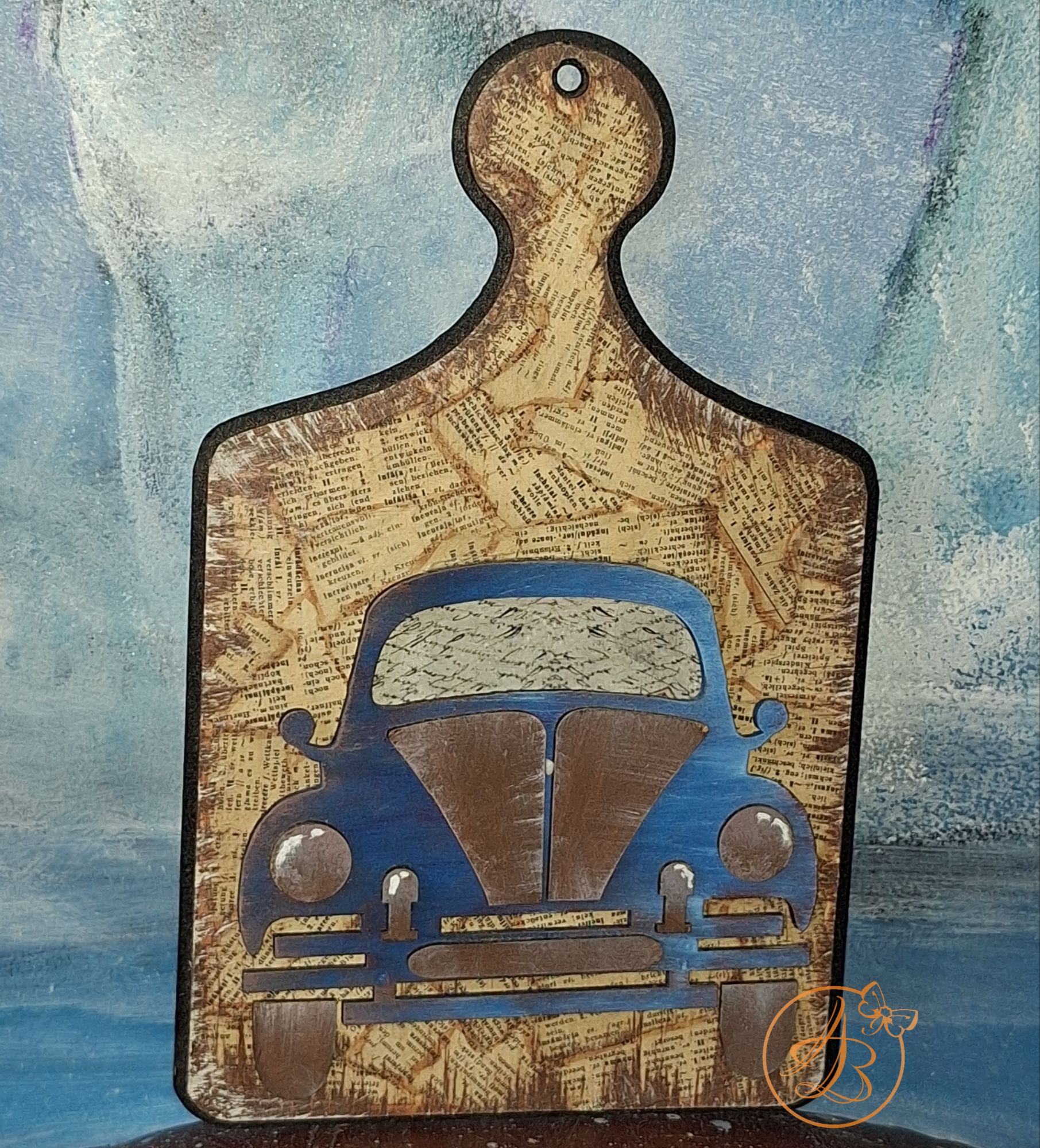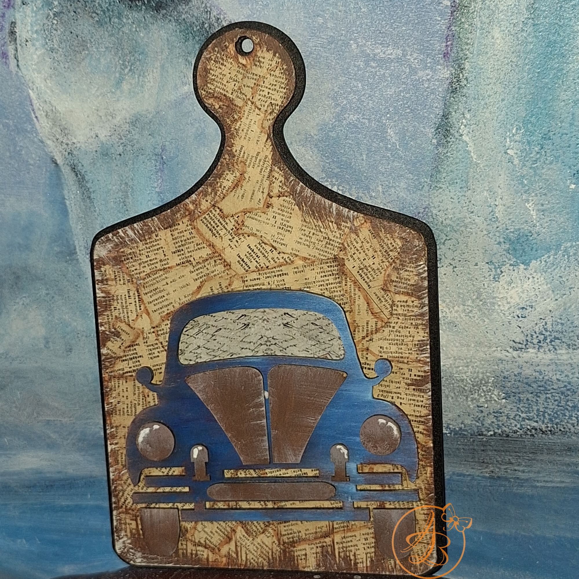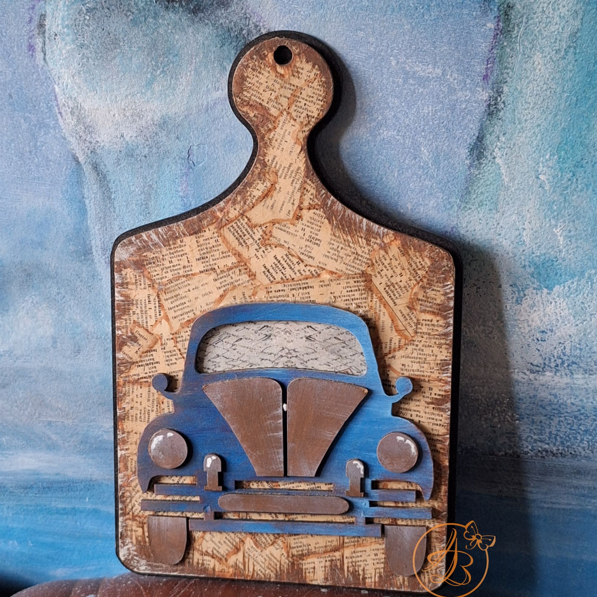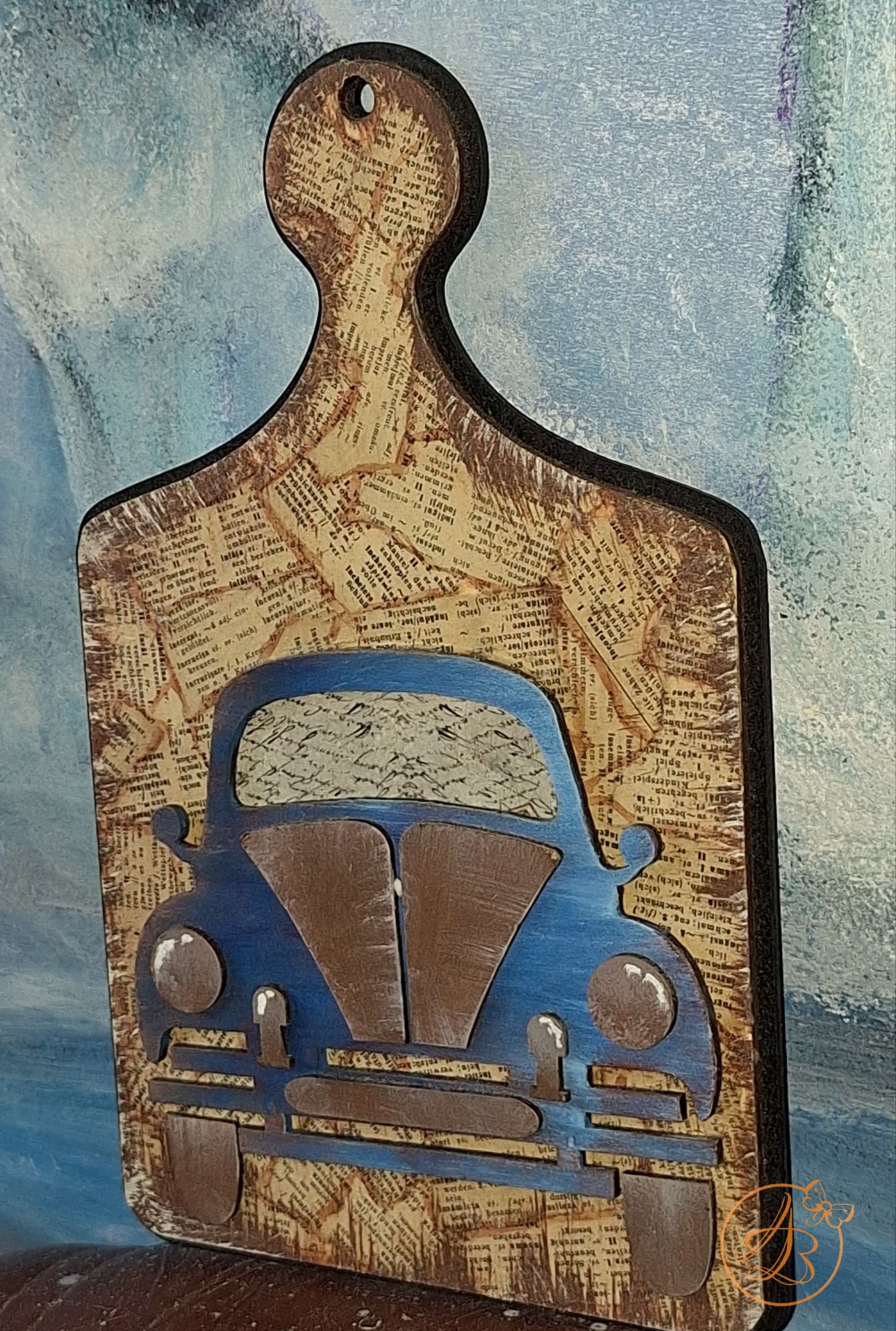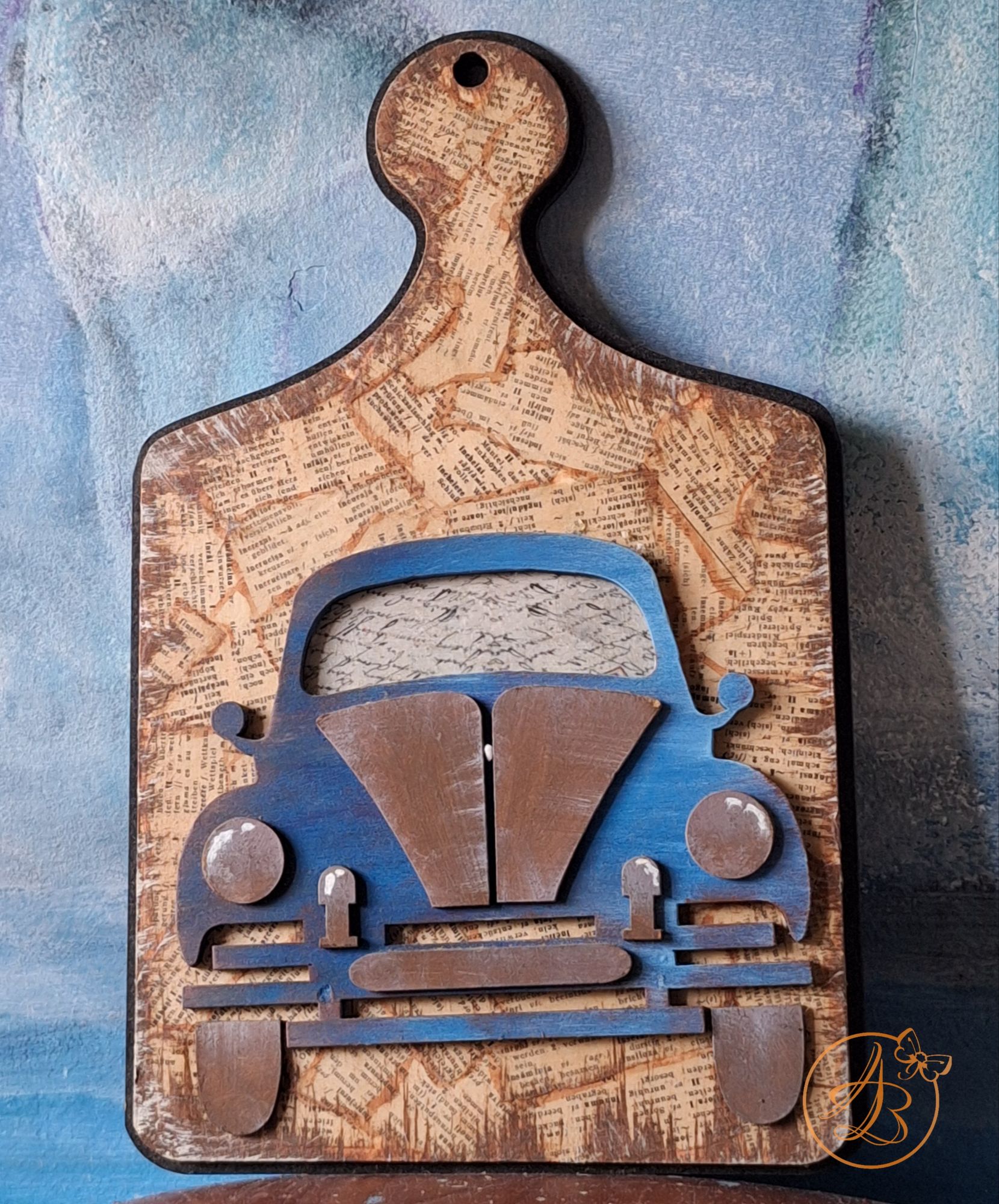 Este realizat din placaj, are dimensiune de 30x19cm, este decorat manual cu diferite tehnici.
