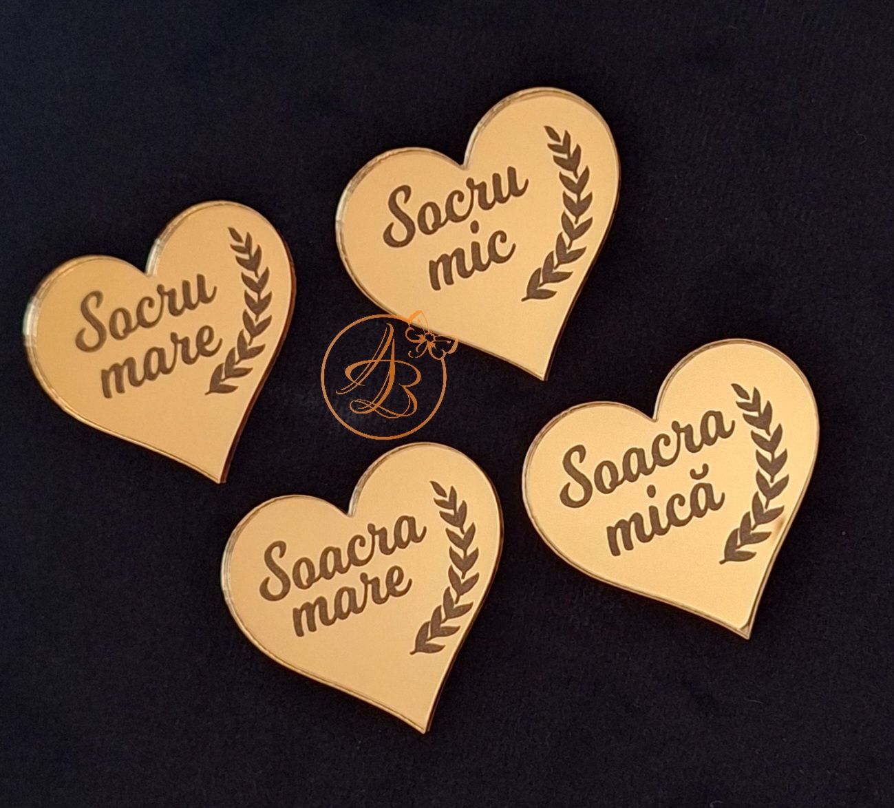 Insigne gravate, forma inimioara, dimensiune 4cm.