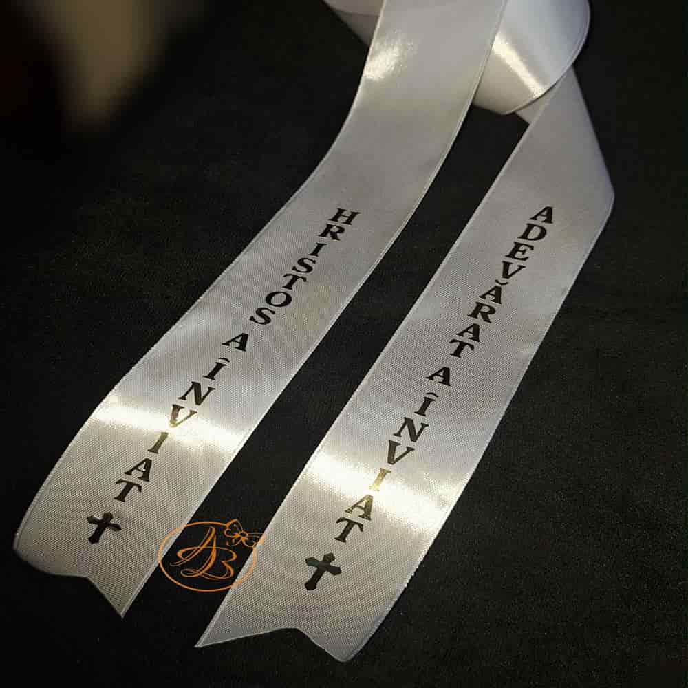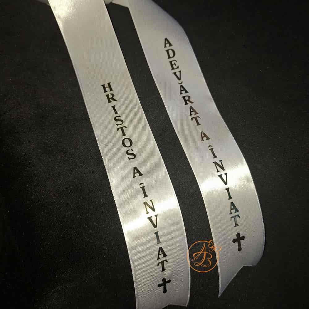 Pretul se refera la panglica 150mm cu text aplicat pe ambele capete, text cu majuscule, asezat pe verticala.