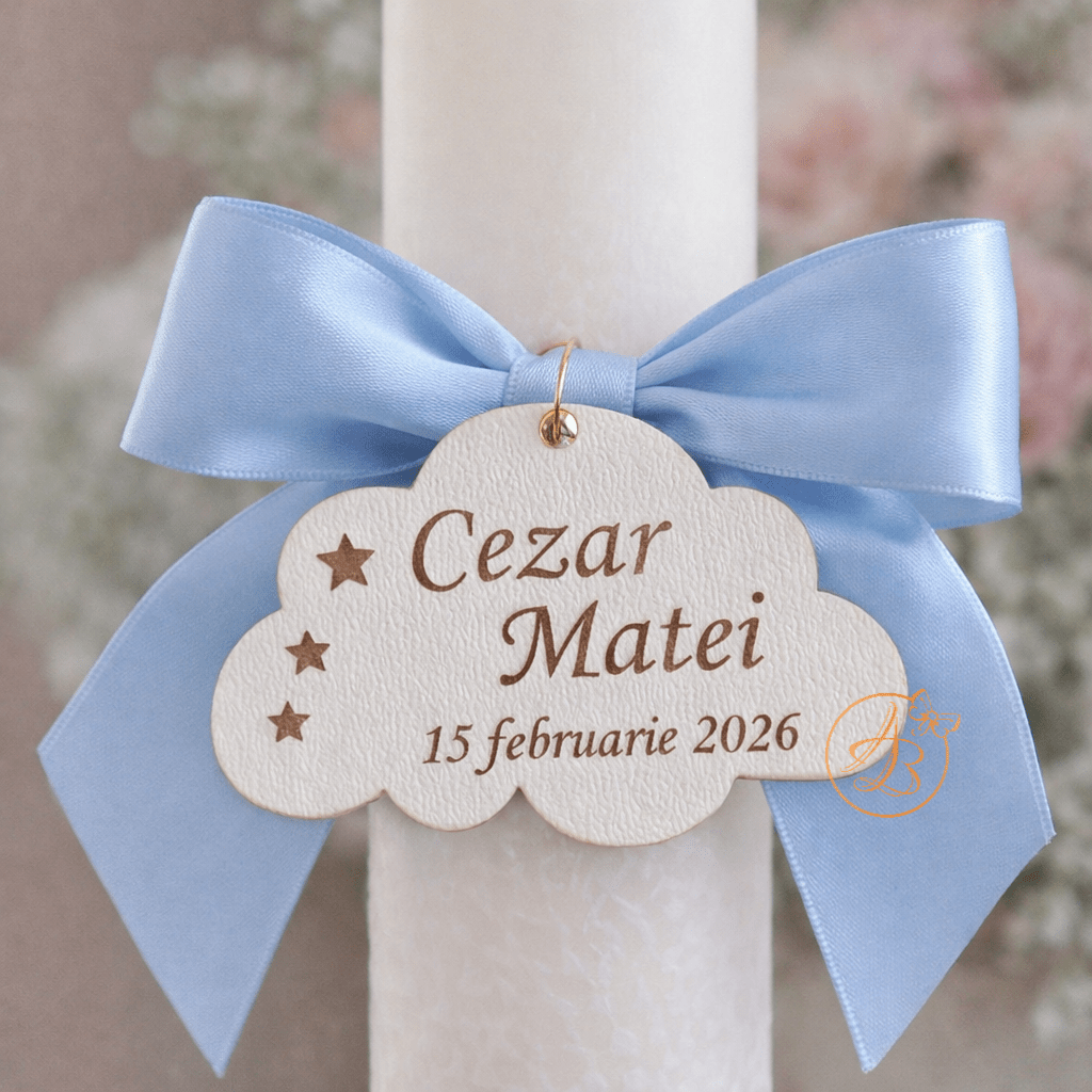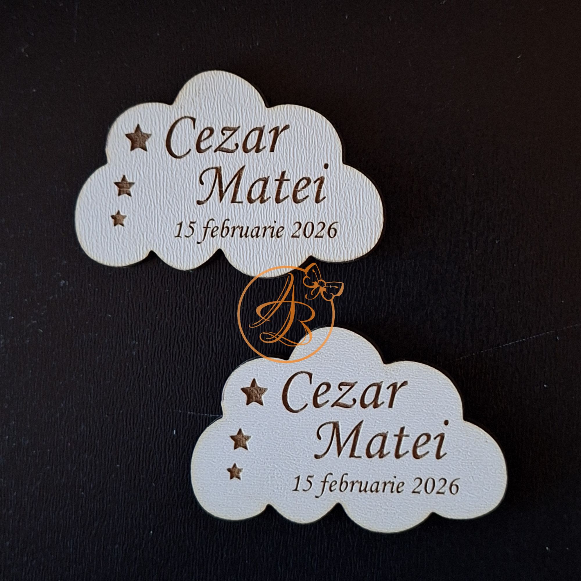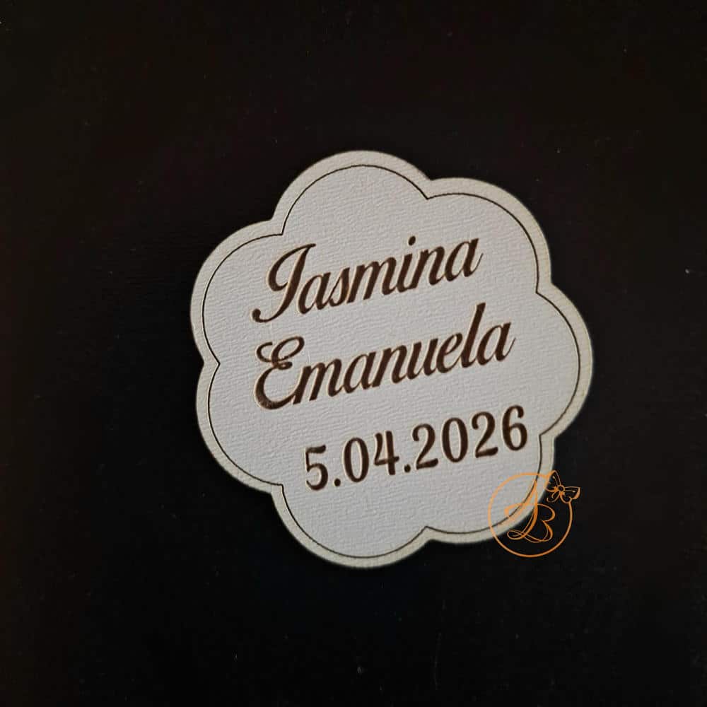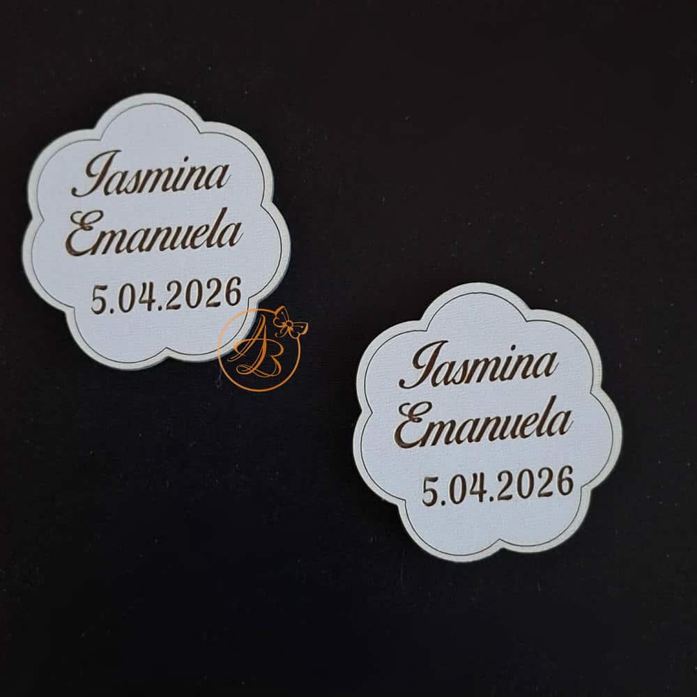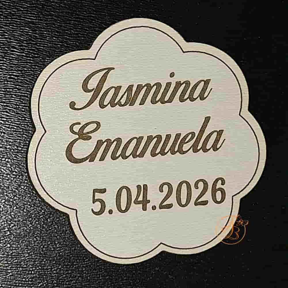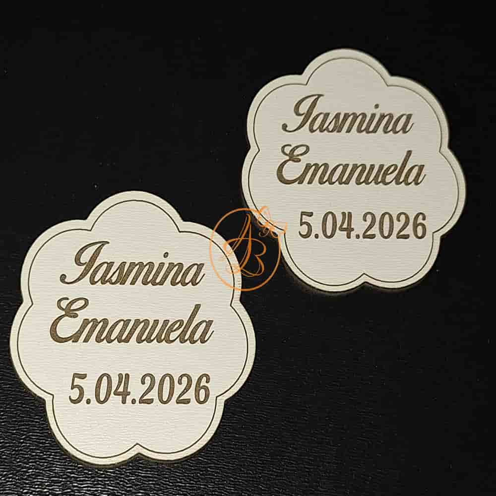 Se personalizeaza cu nume, data. Se poate realiza orice forma (cerc, oval, dreptunghiular, inimioara, norisor, floricica, etc)