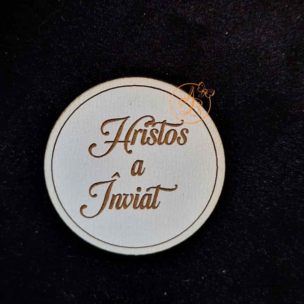 Placuta este gravata cu textul ”Hristos a Inviat”.