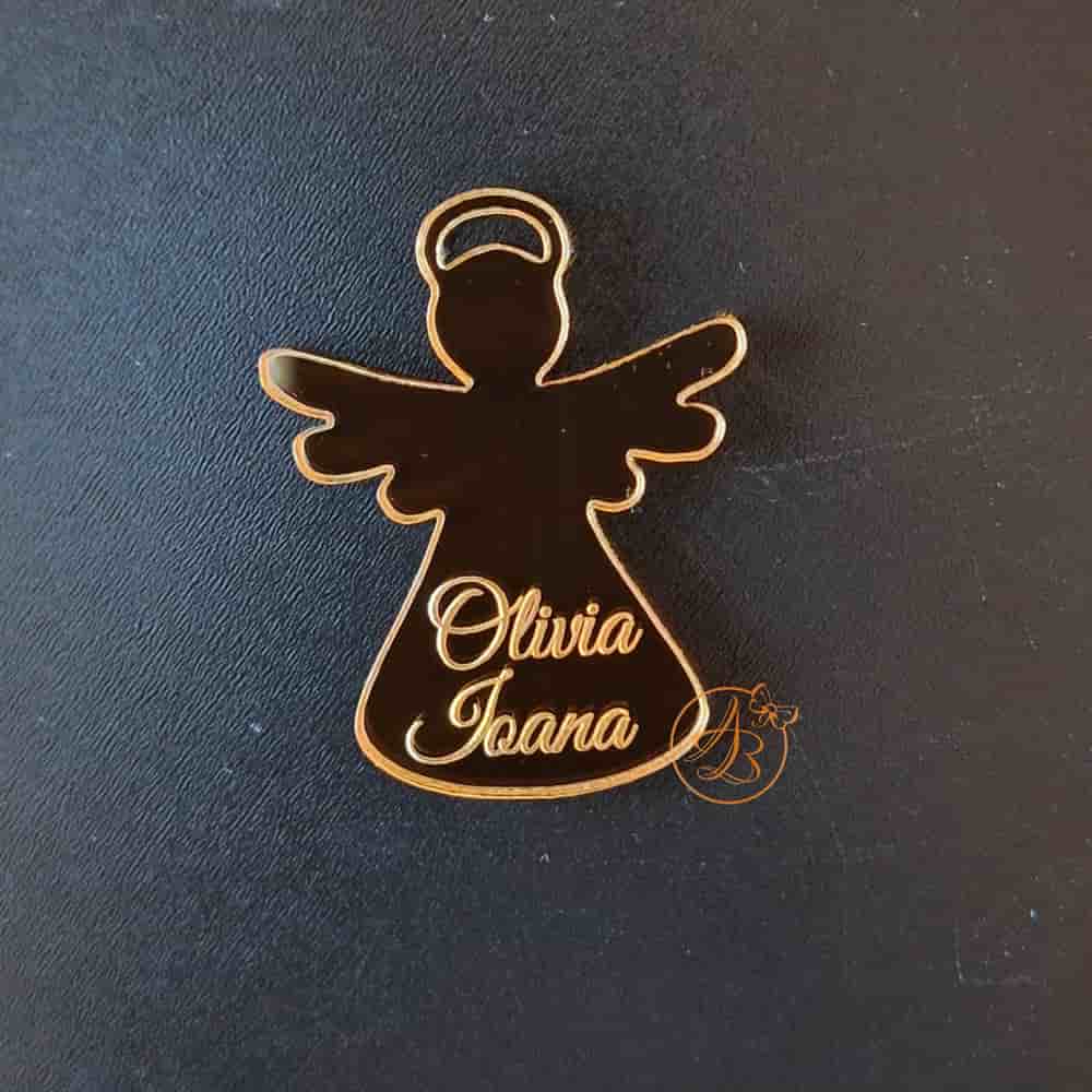 Un decor deosebit pentru lumanare la nunta sau botez, ingeras realizat din oglinda acrilica aurie sau argintie, cu inaltime de 6 cm.