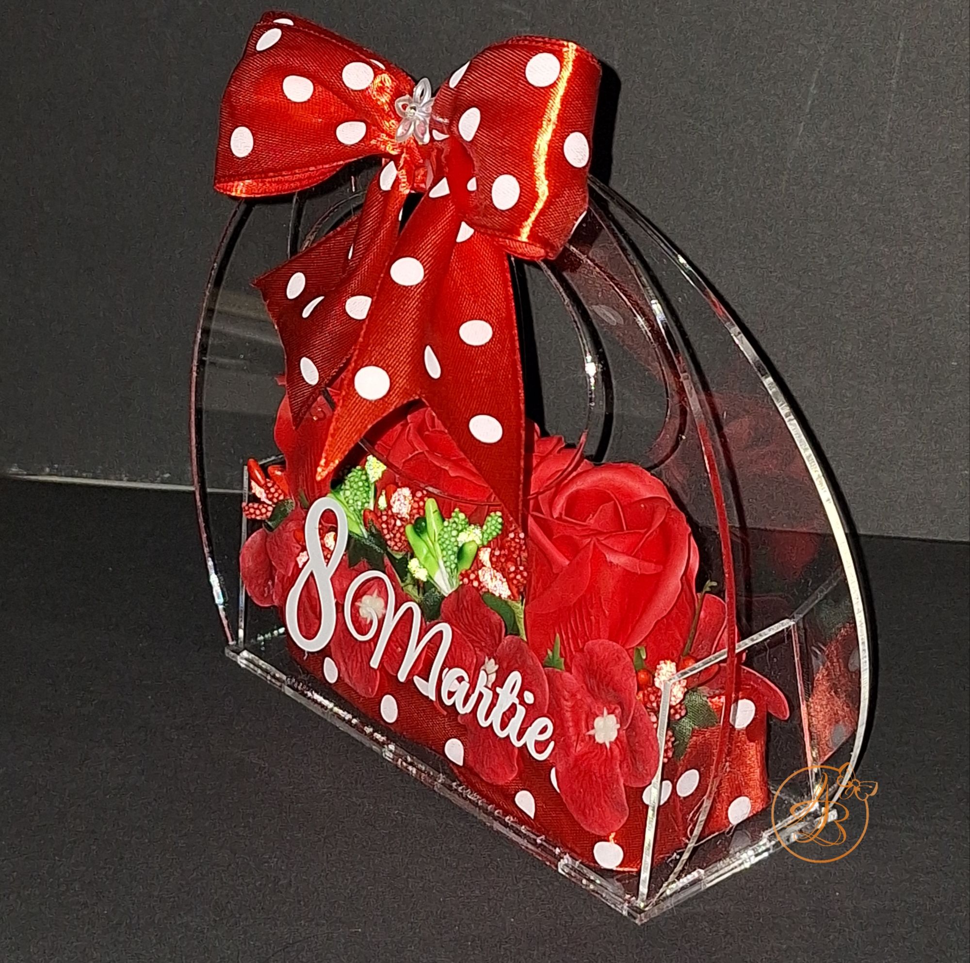 Pretul se refera la 1 posetuta cu flori de sapun, personalizata cu text scurt.