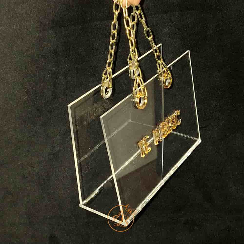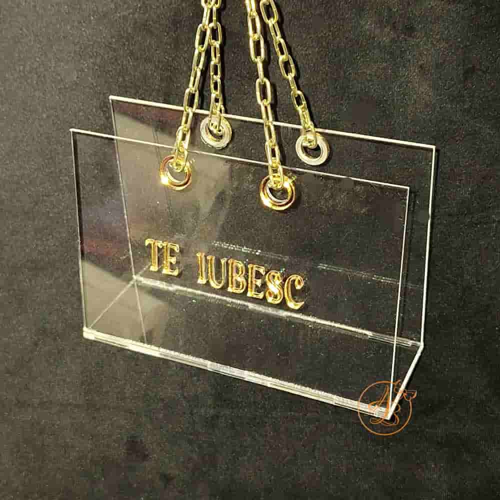 Poșetele plexiglass se livrează cu folie de protecție aplicată pe suprafața, precum și pe decorațiuni și textele realizate din oglindă acrilică.