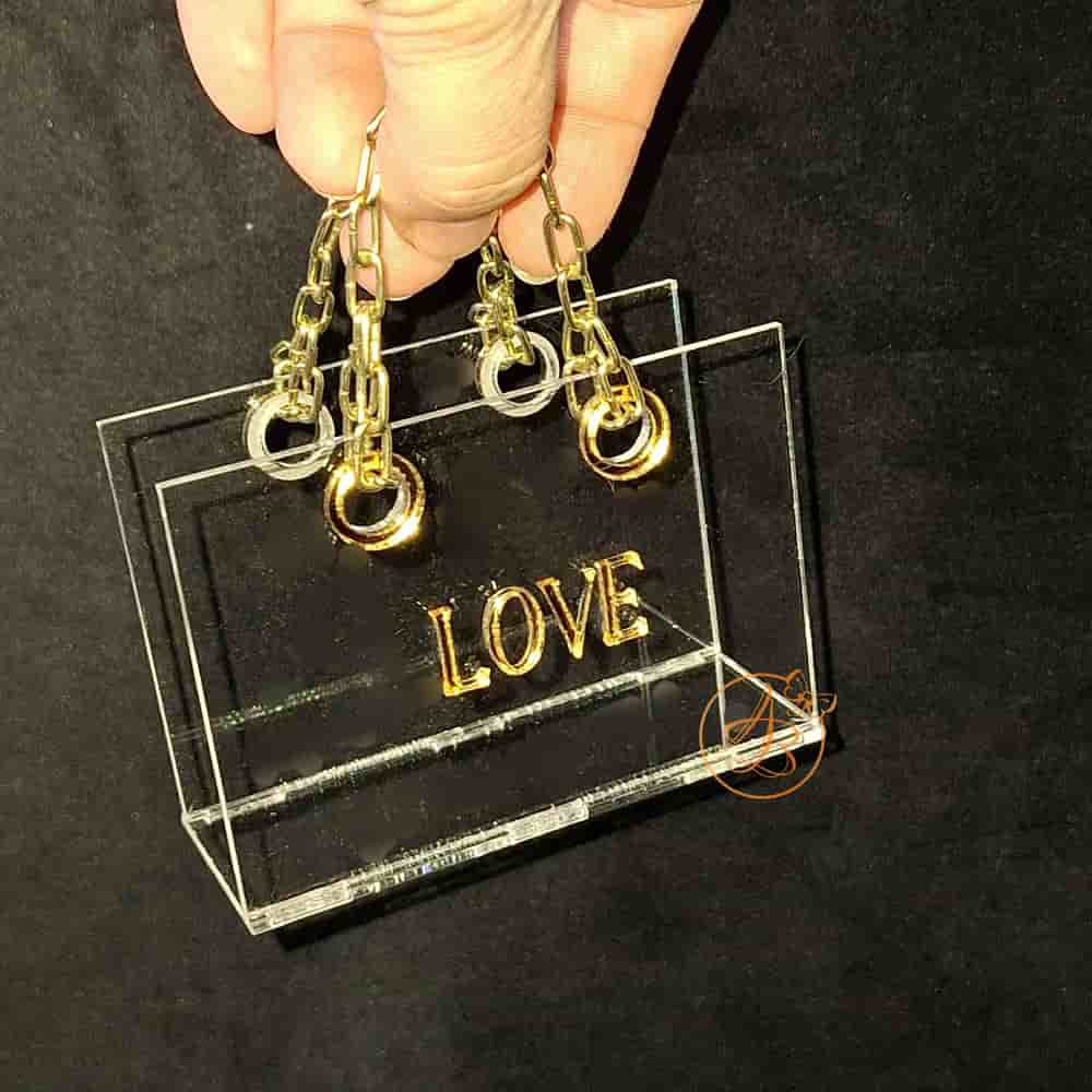 Poșetele plexiglass se livrează cu folie de protecție aplicată pe suprafața, precum și pe decorațiuni și textele realizate din oglindă acrilică.