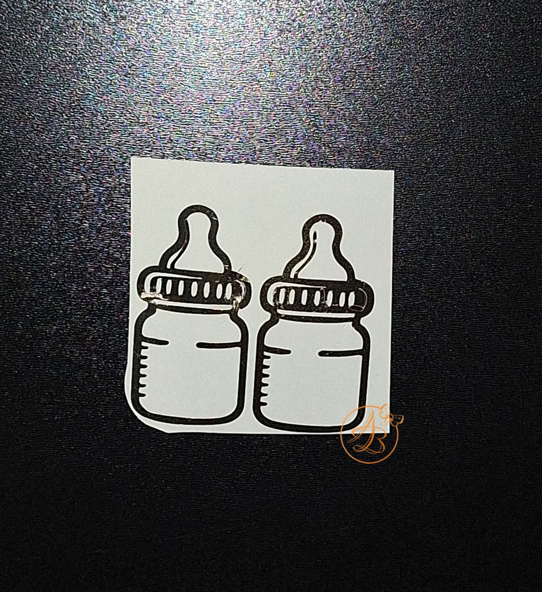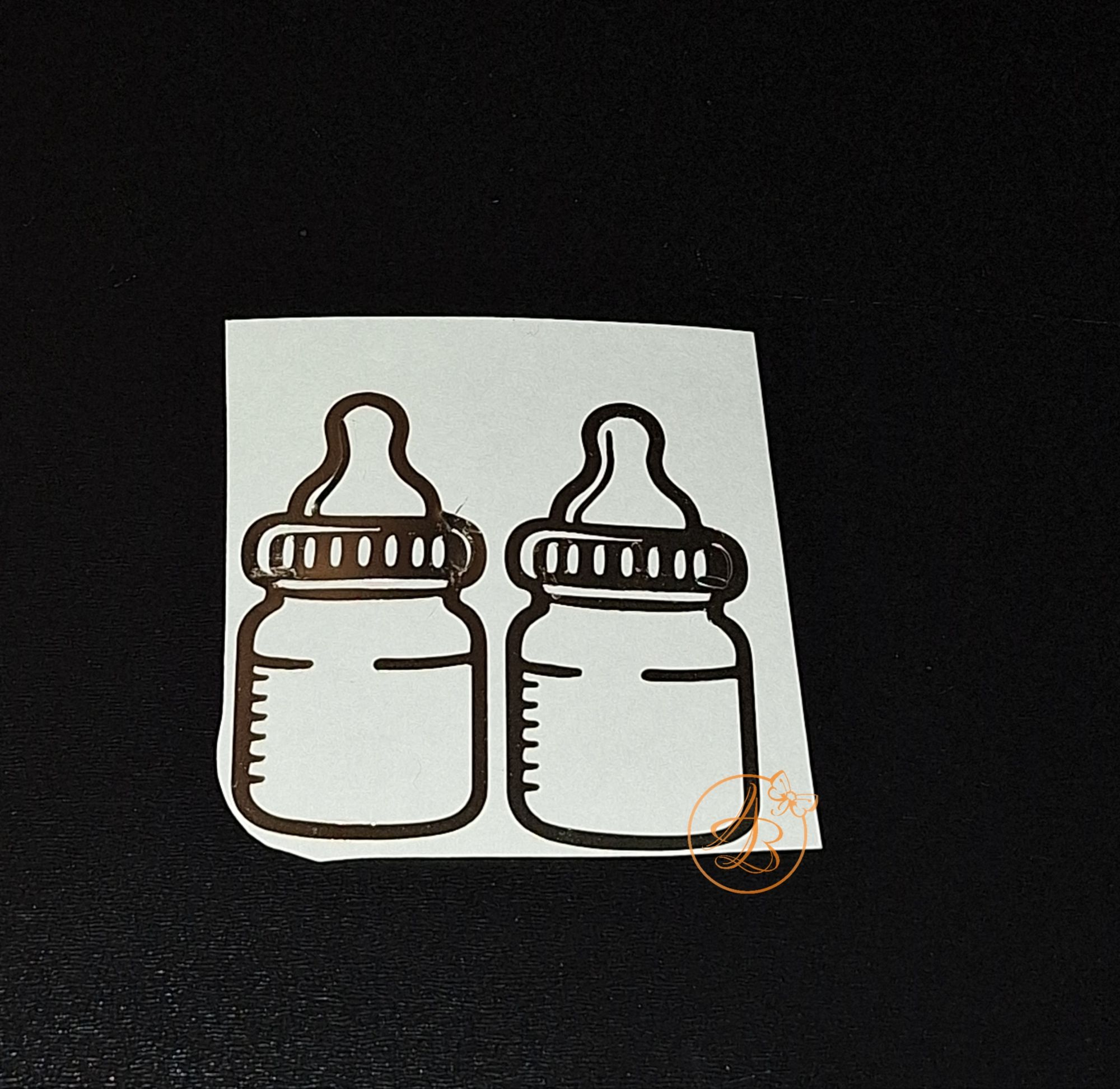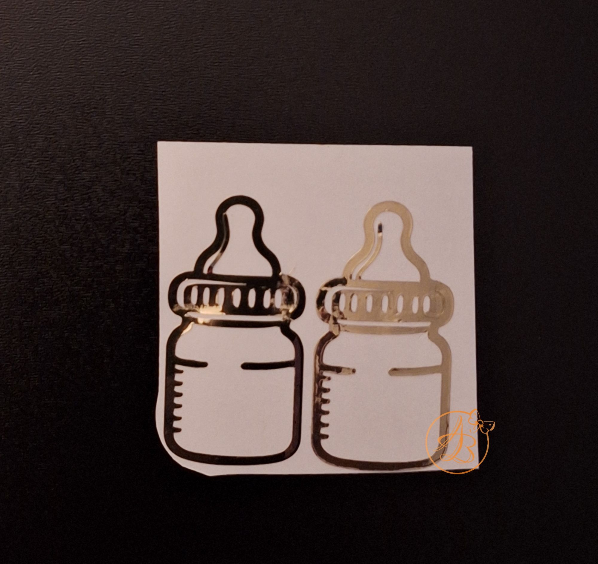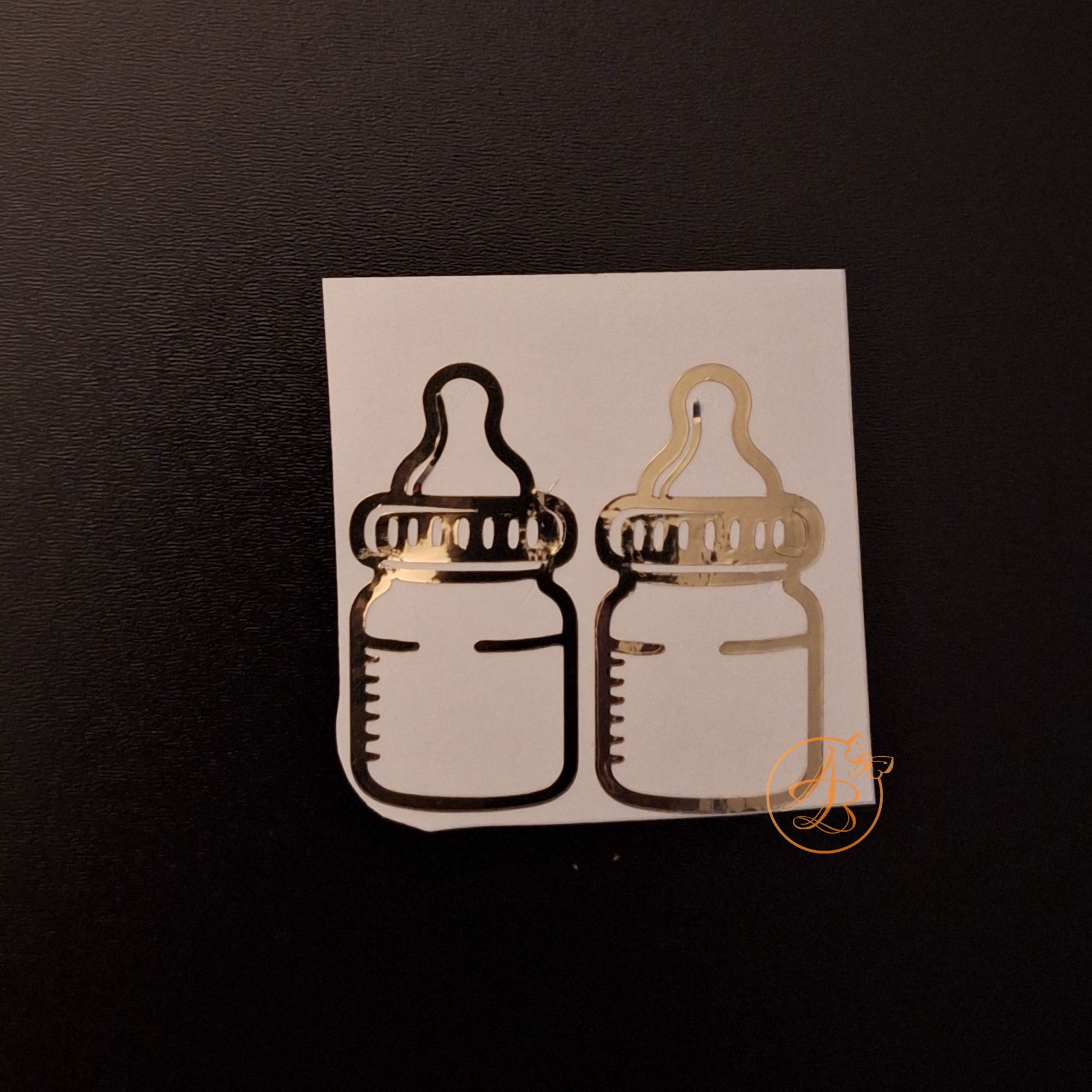 Sticker auriu tip oglinda, model sticla cu biberon.