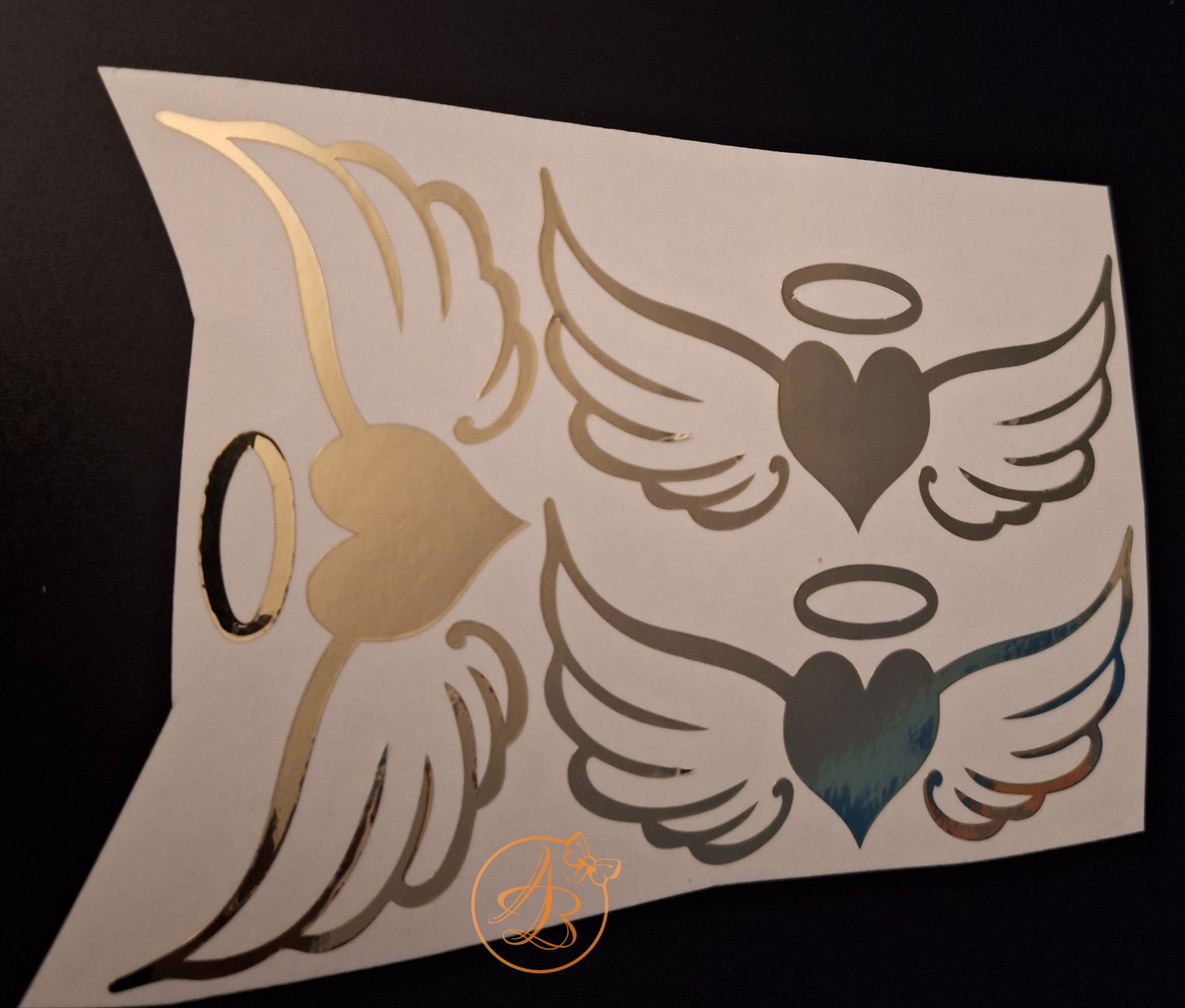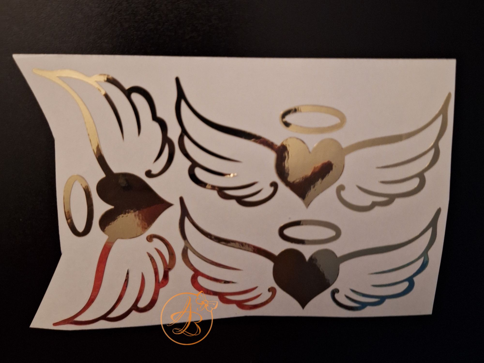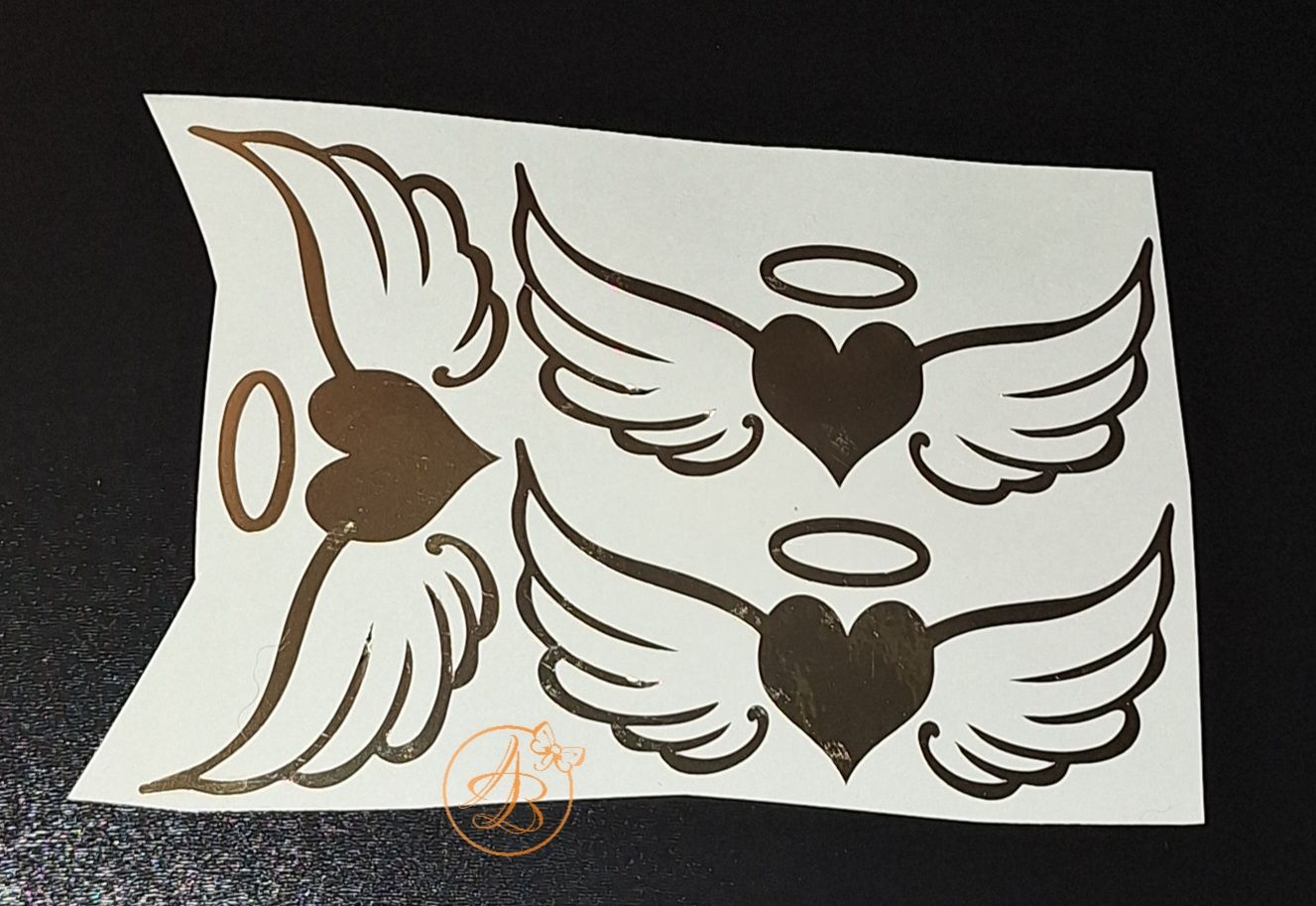 Pretul se refera la set de 3 stickere de inima cu aripi, modelul din imagine.