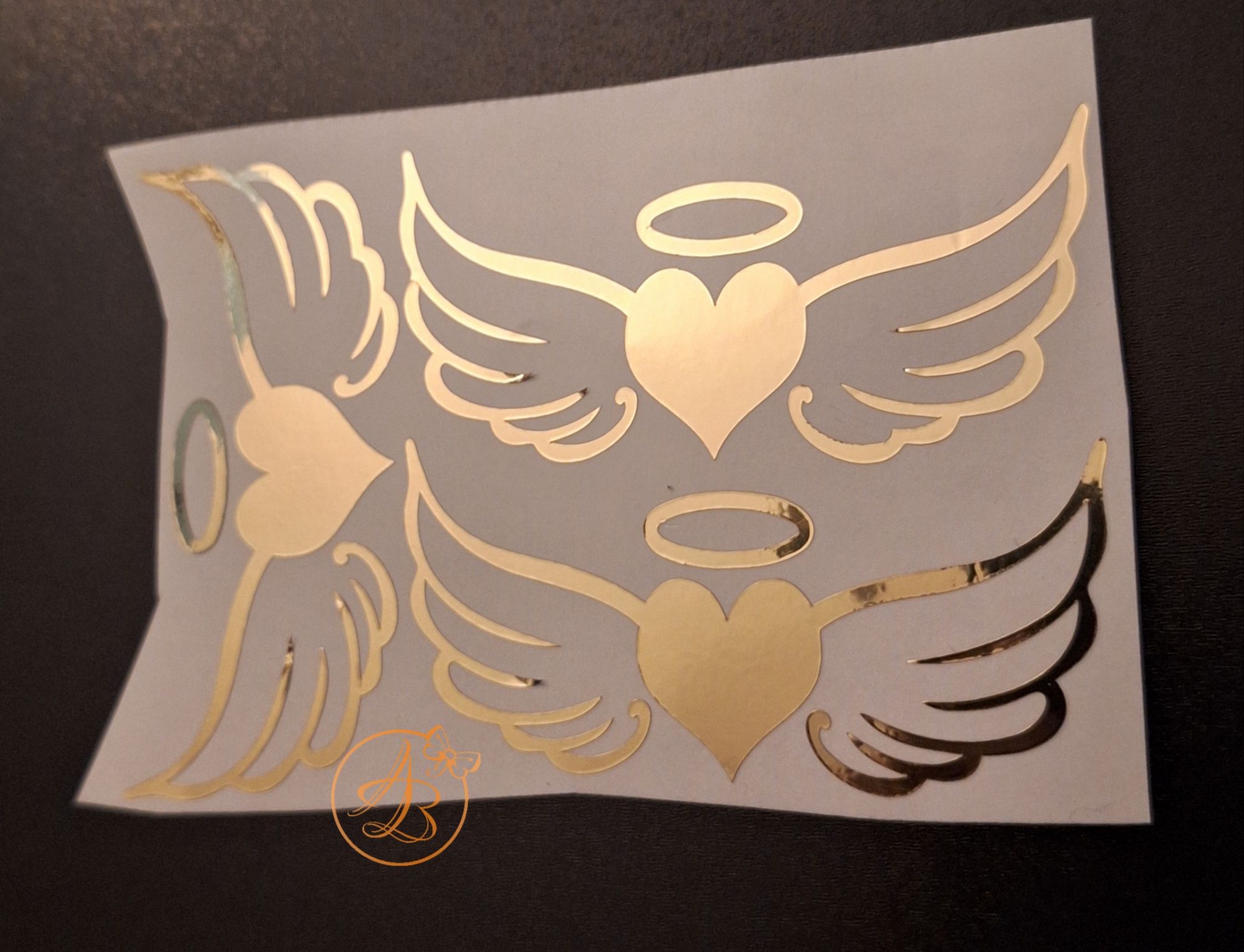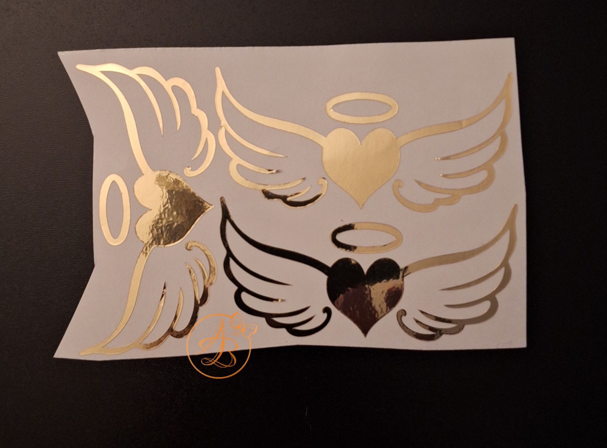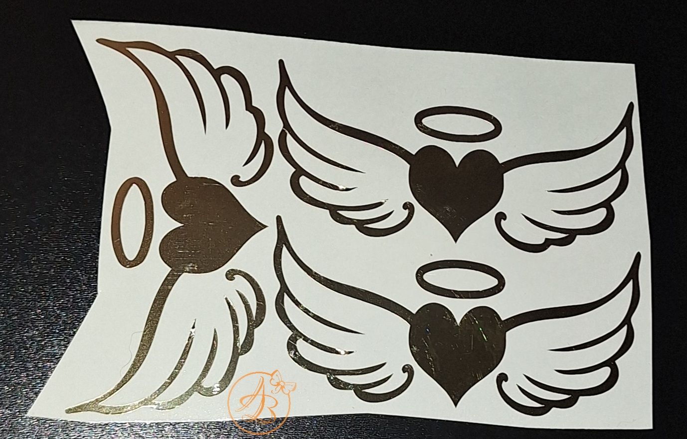 Pretul se refera la set de 3 stickere de inima cu aripi, modelul din imagine.