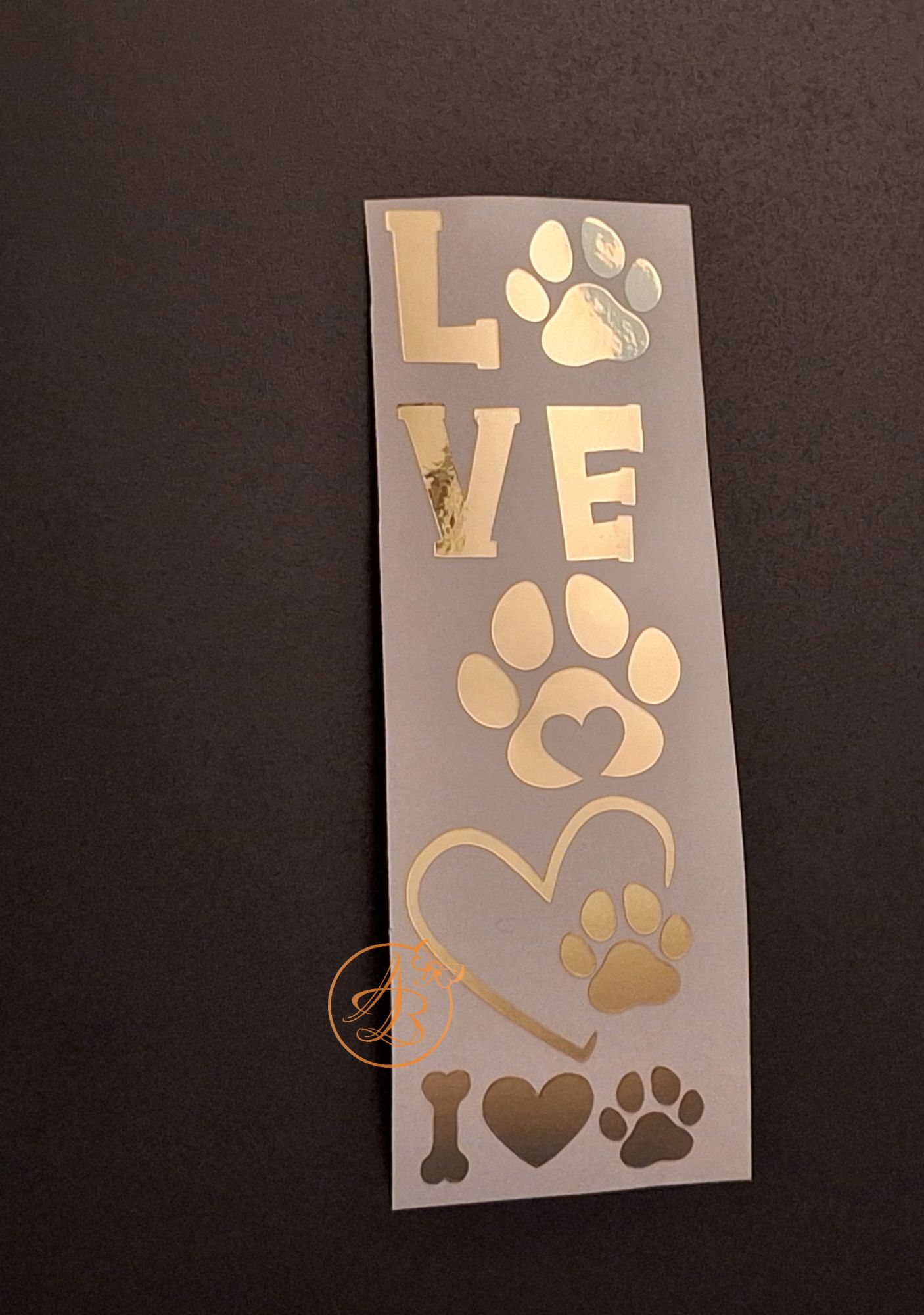 Sticker auriu tip oglinda, model cu labute animale.