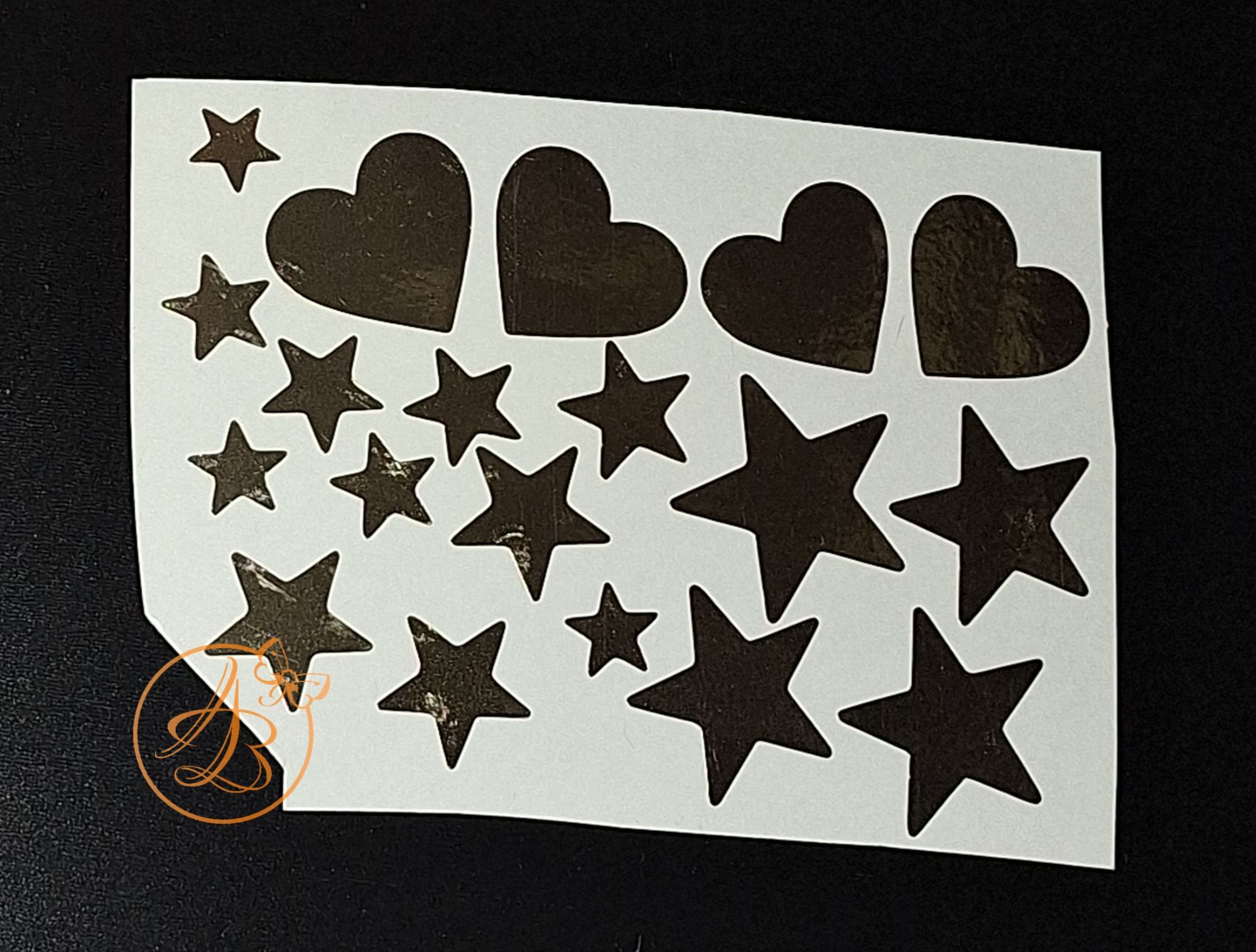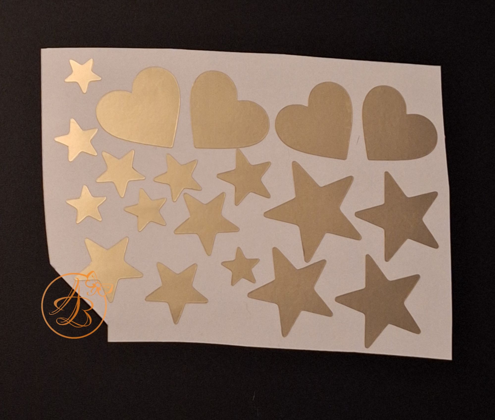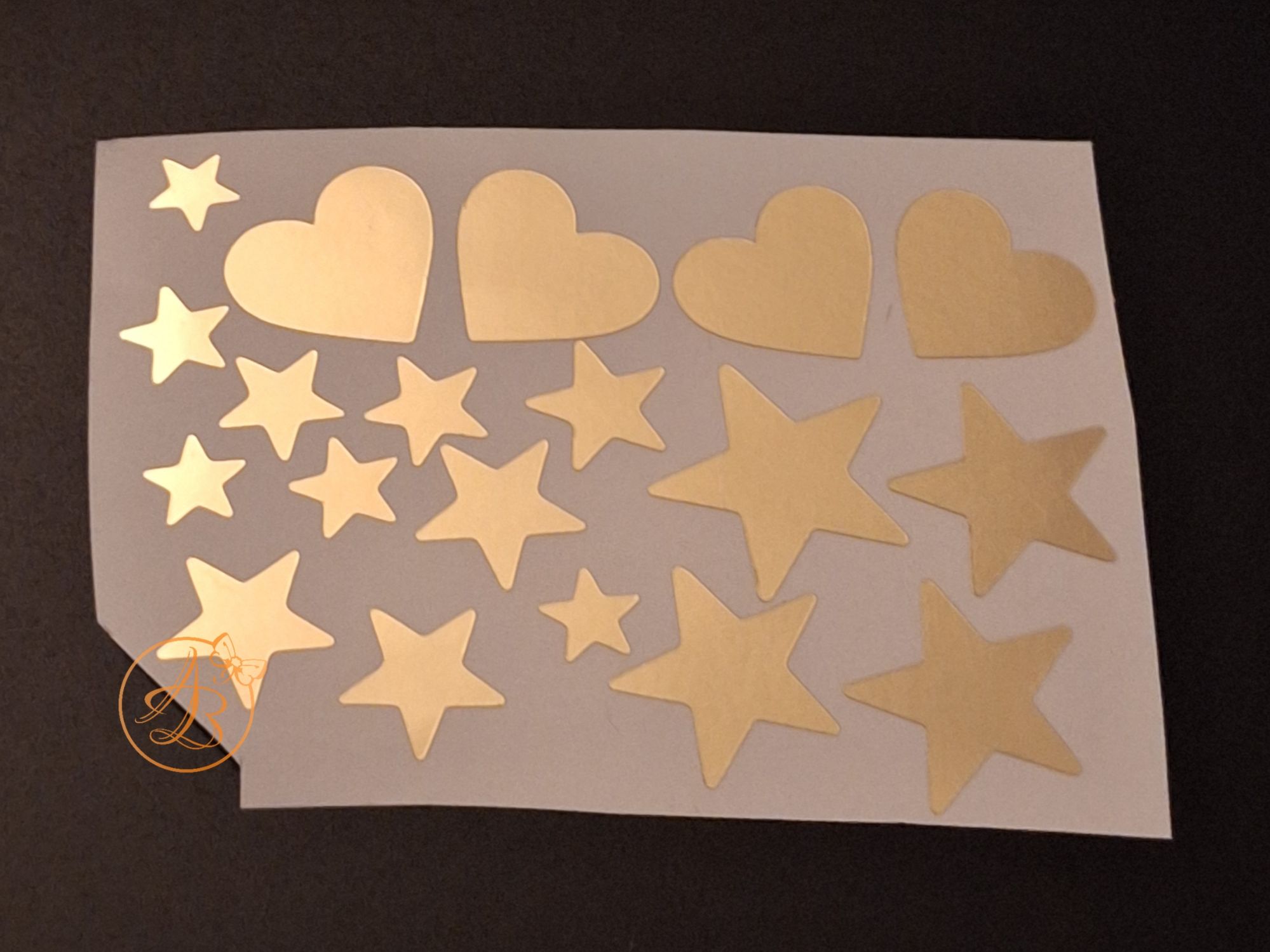 Sticker auriu tip oglinda, model inimioare si stelute.