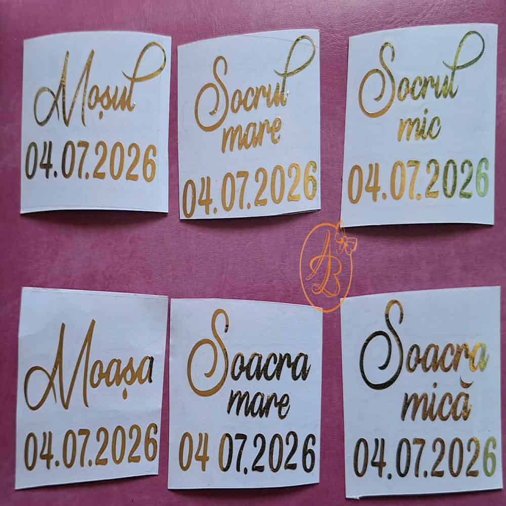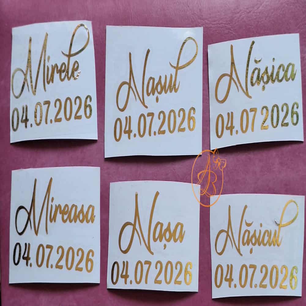 Stickere aurii sau argintii tip oglinda, ce se pot lipi pe pahare, dar si pe umerase, sau pe orice obiect se doreste.