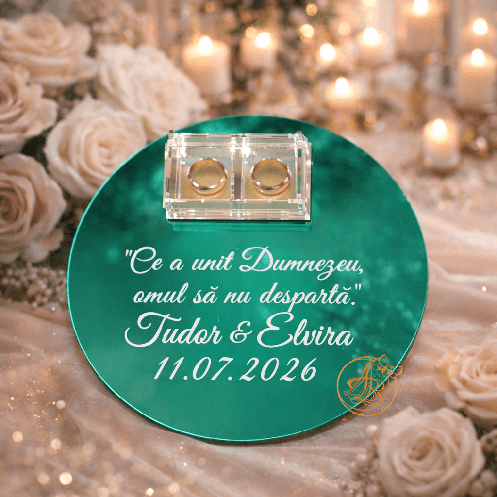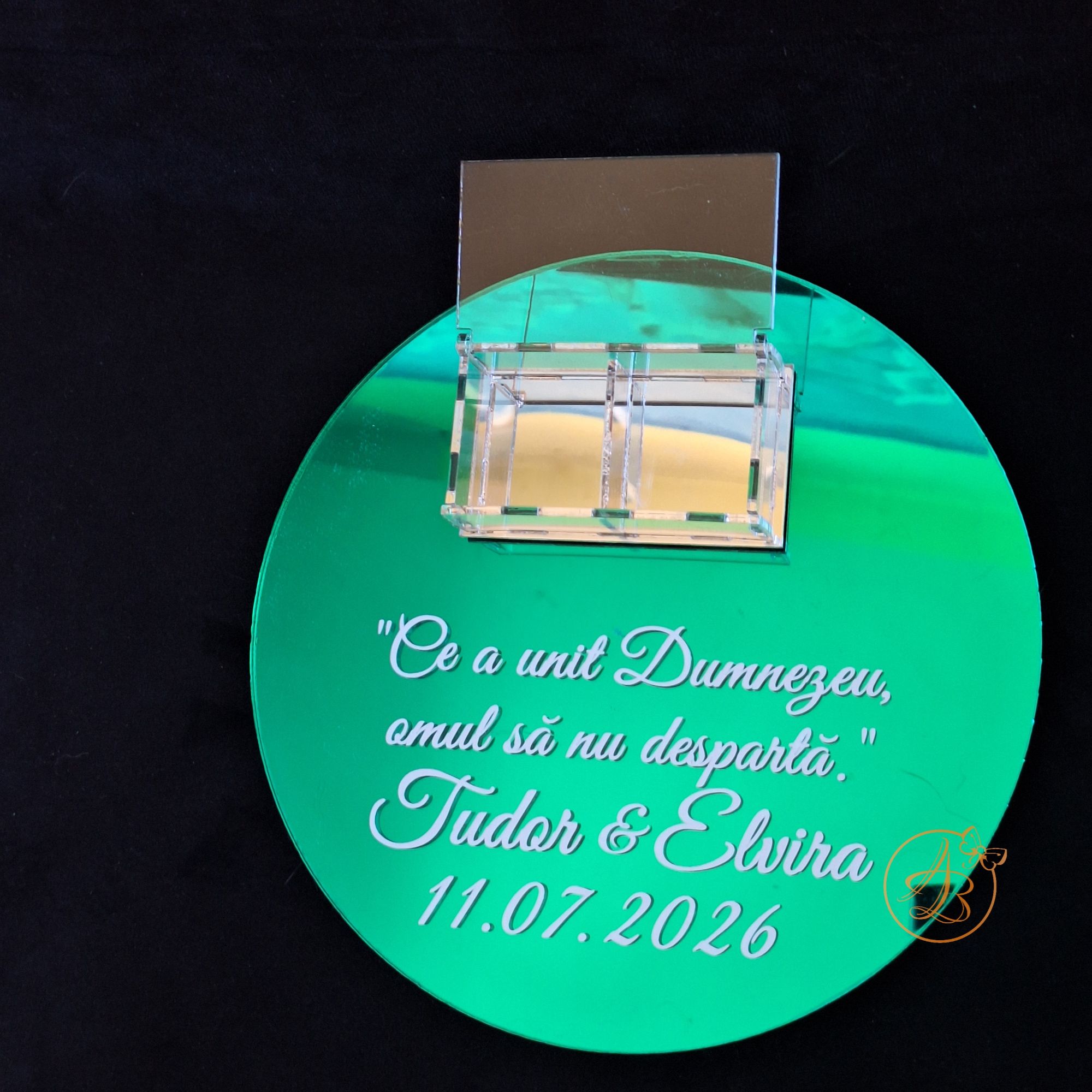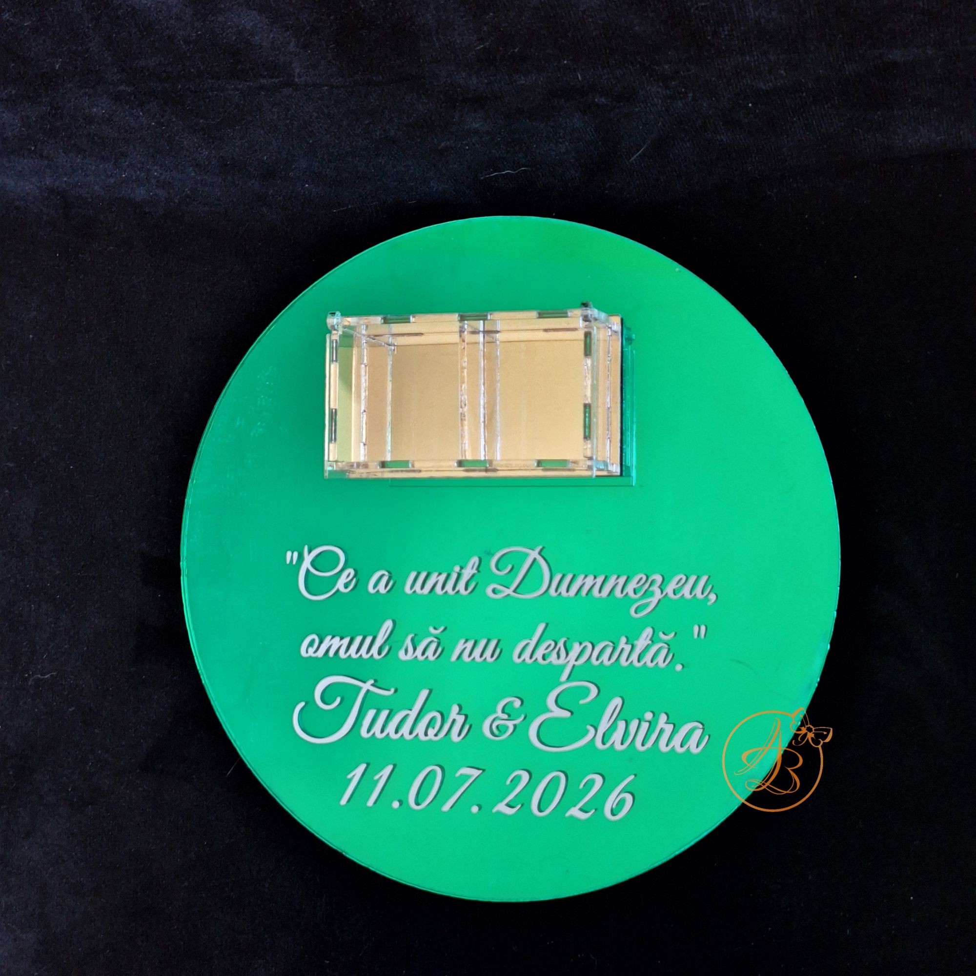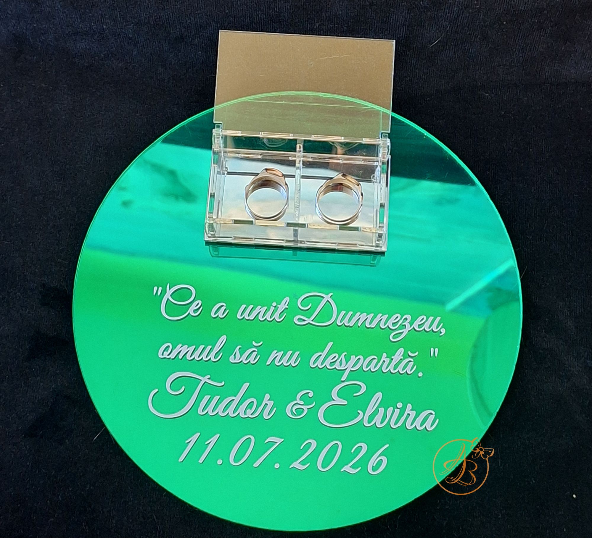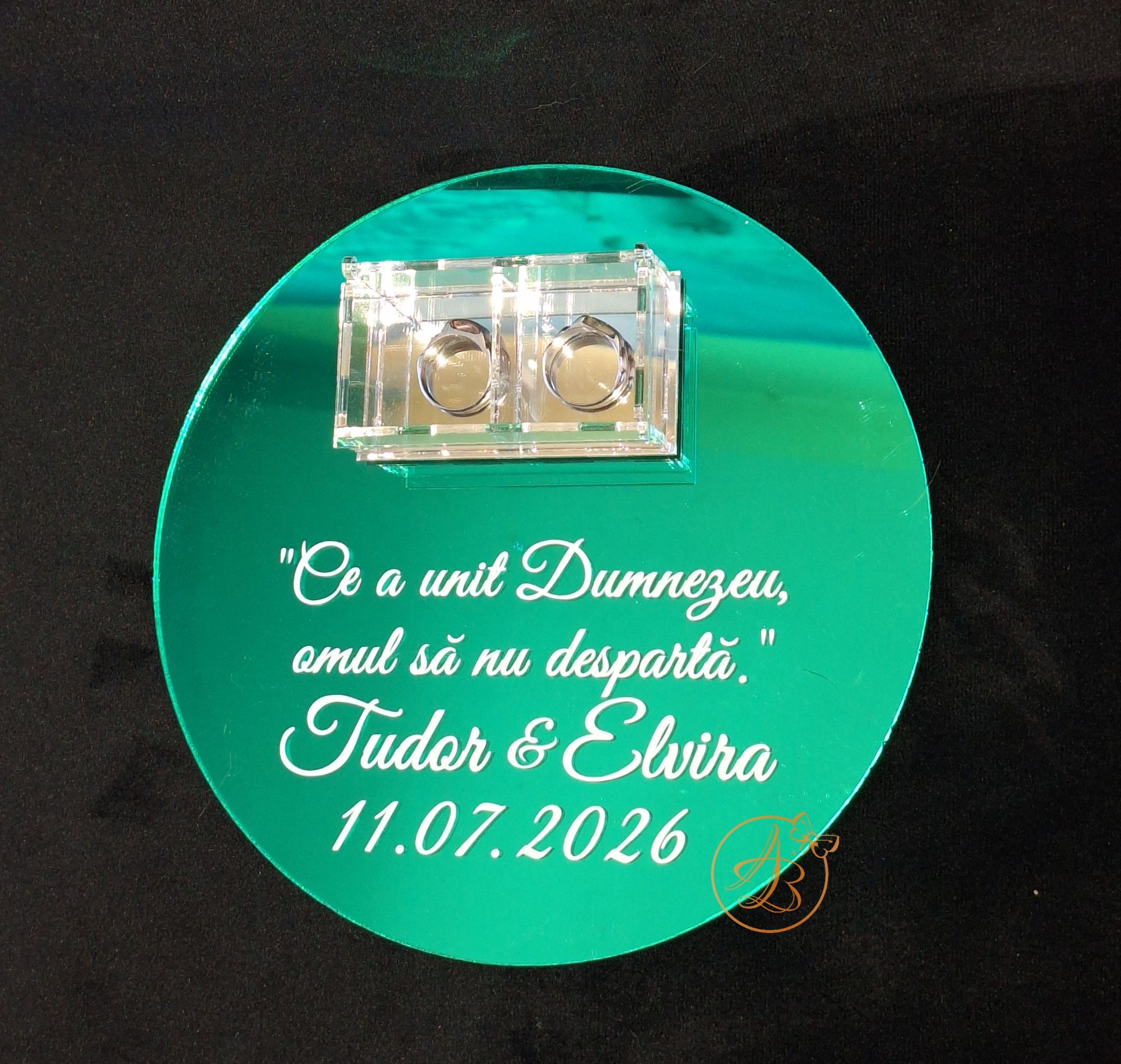 Suport pentru verighete, deosebit de elegant, din oglinda acrilica verde.