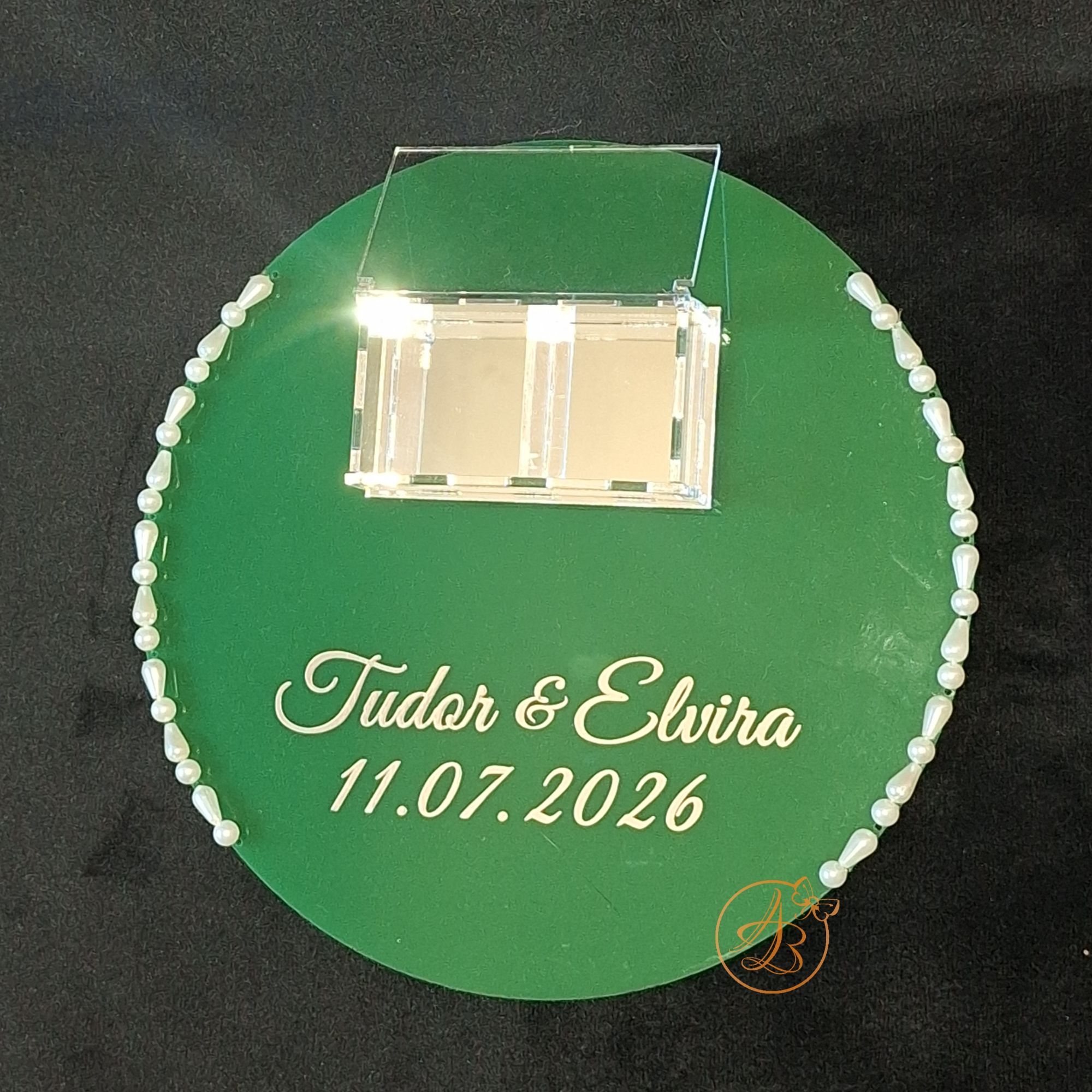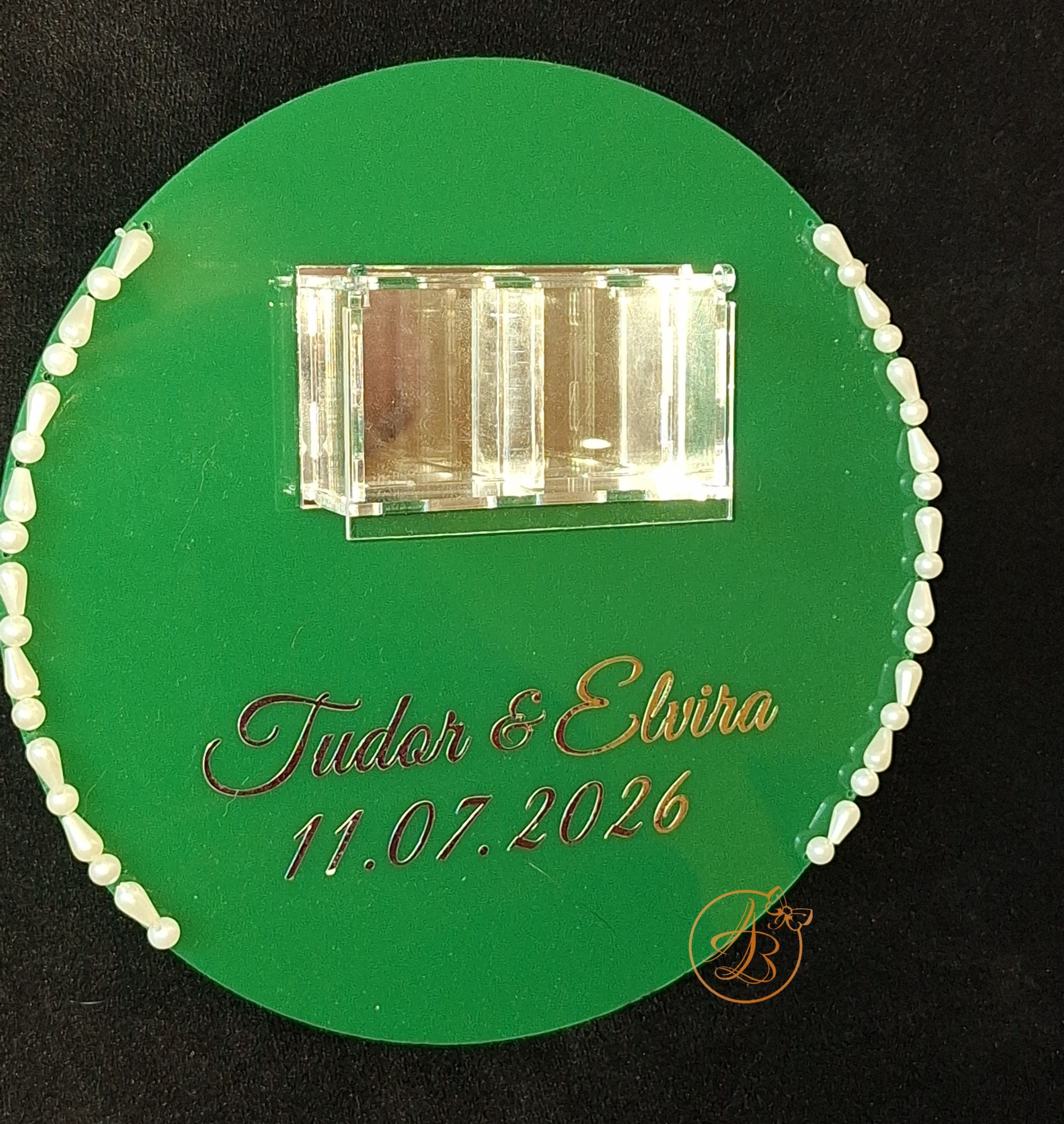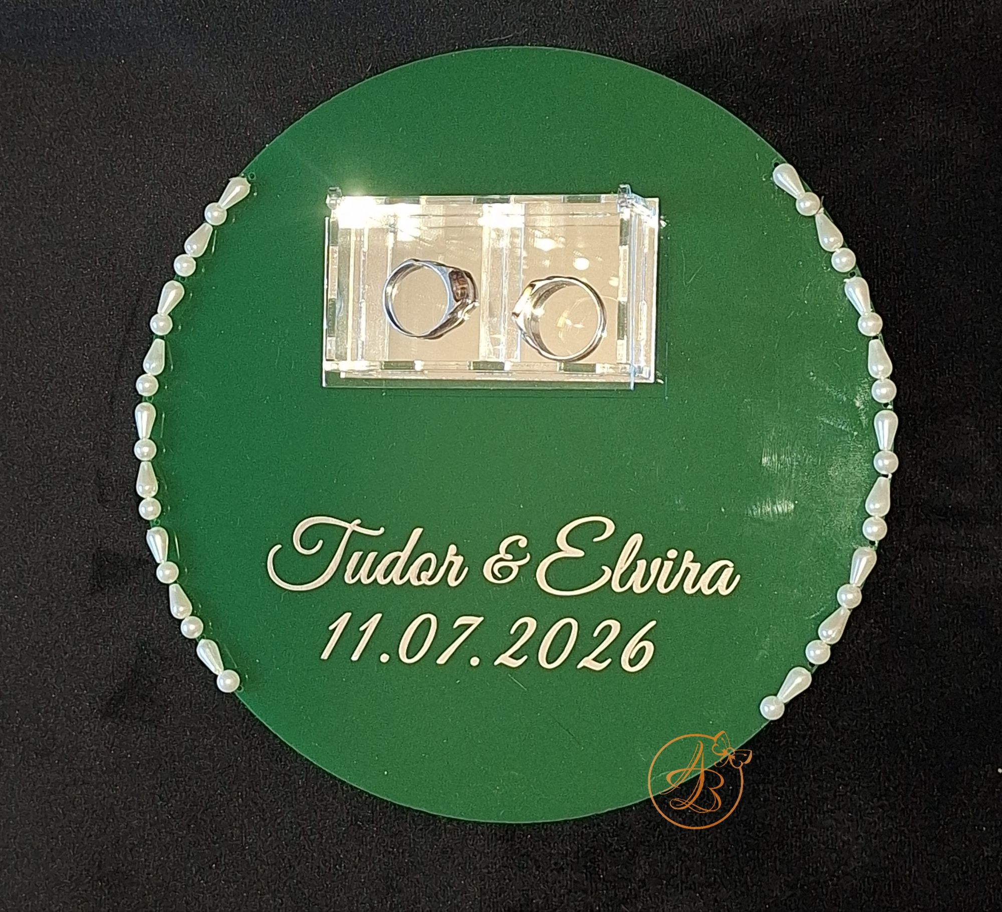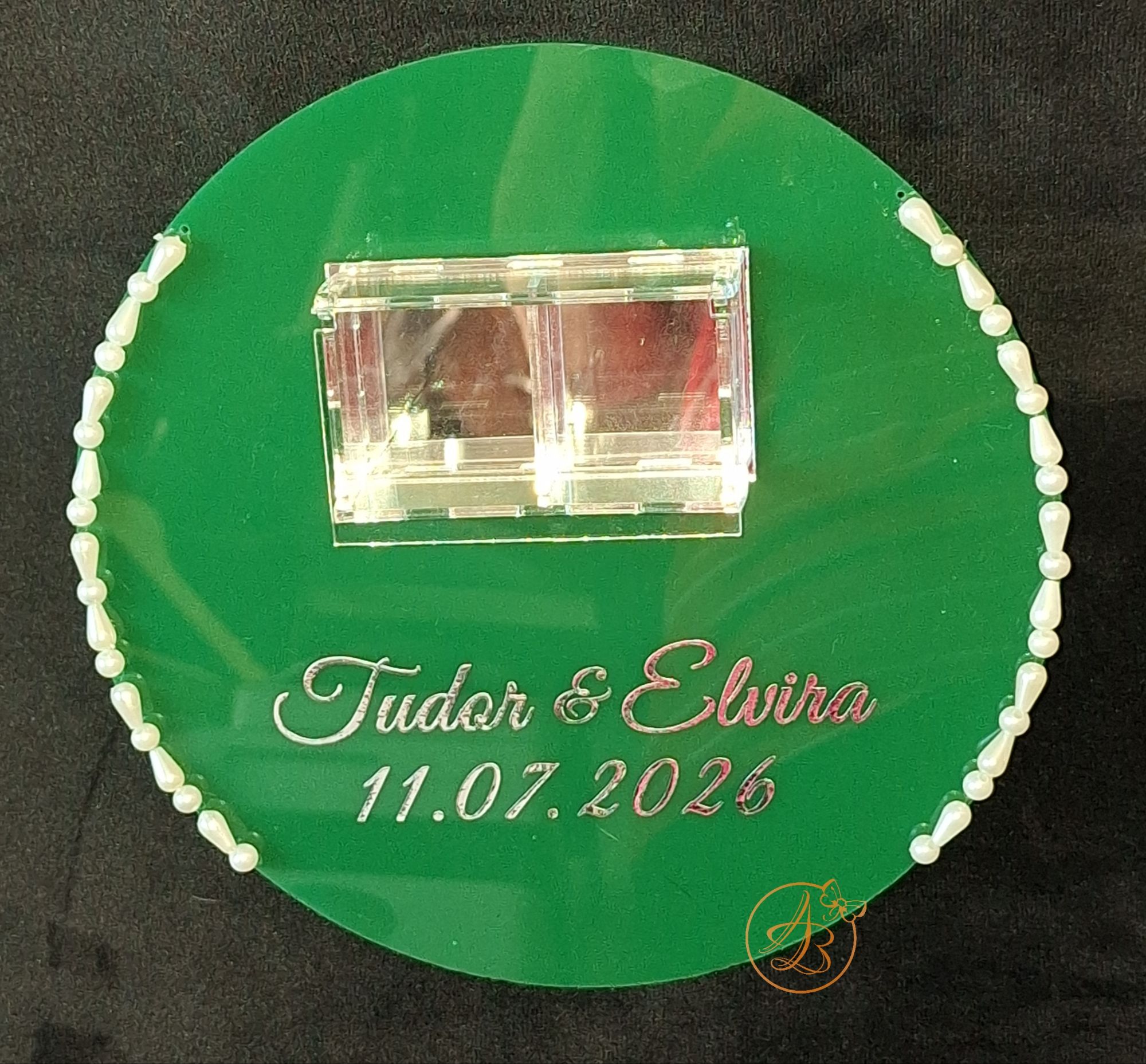 Suport pentru verighete, deosebit de elegant, din plexiglass verde.
