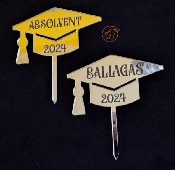 Topper realizat din oglinda aurie sau argintie, lungime 8cm, cu textul gravat.