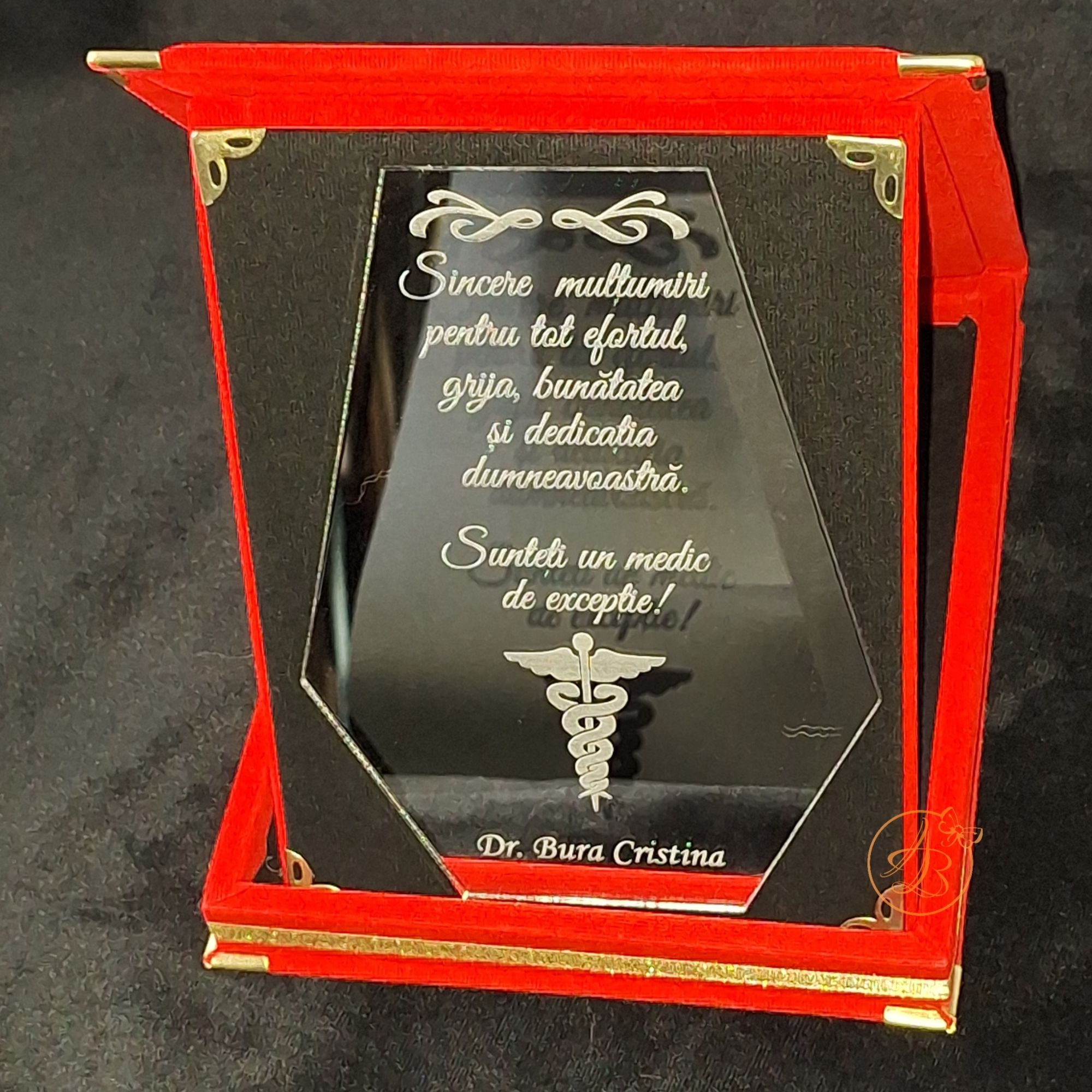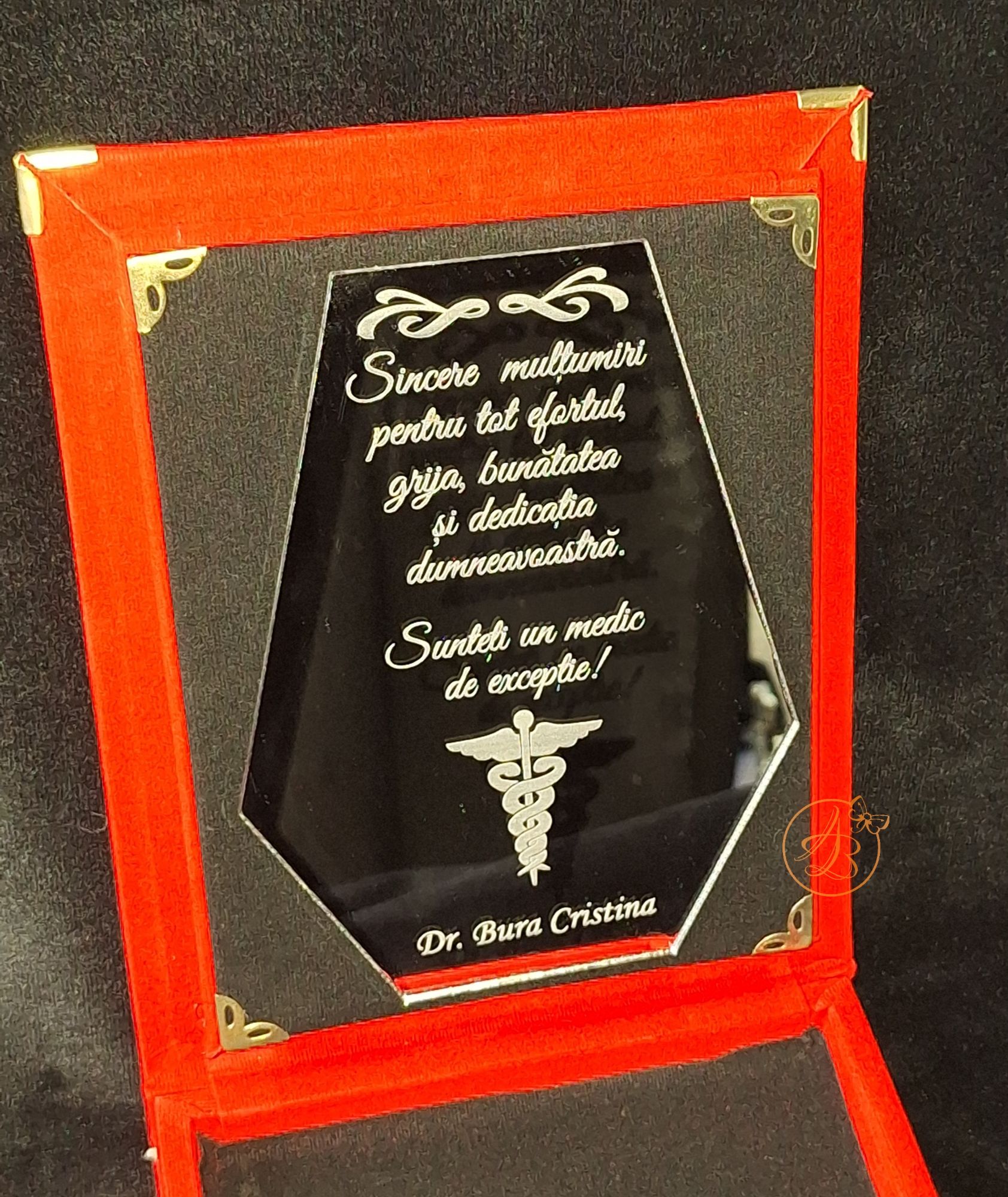 Pretul se refera la 1 cutie rosie cu placheta oglinda personalizata.