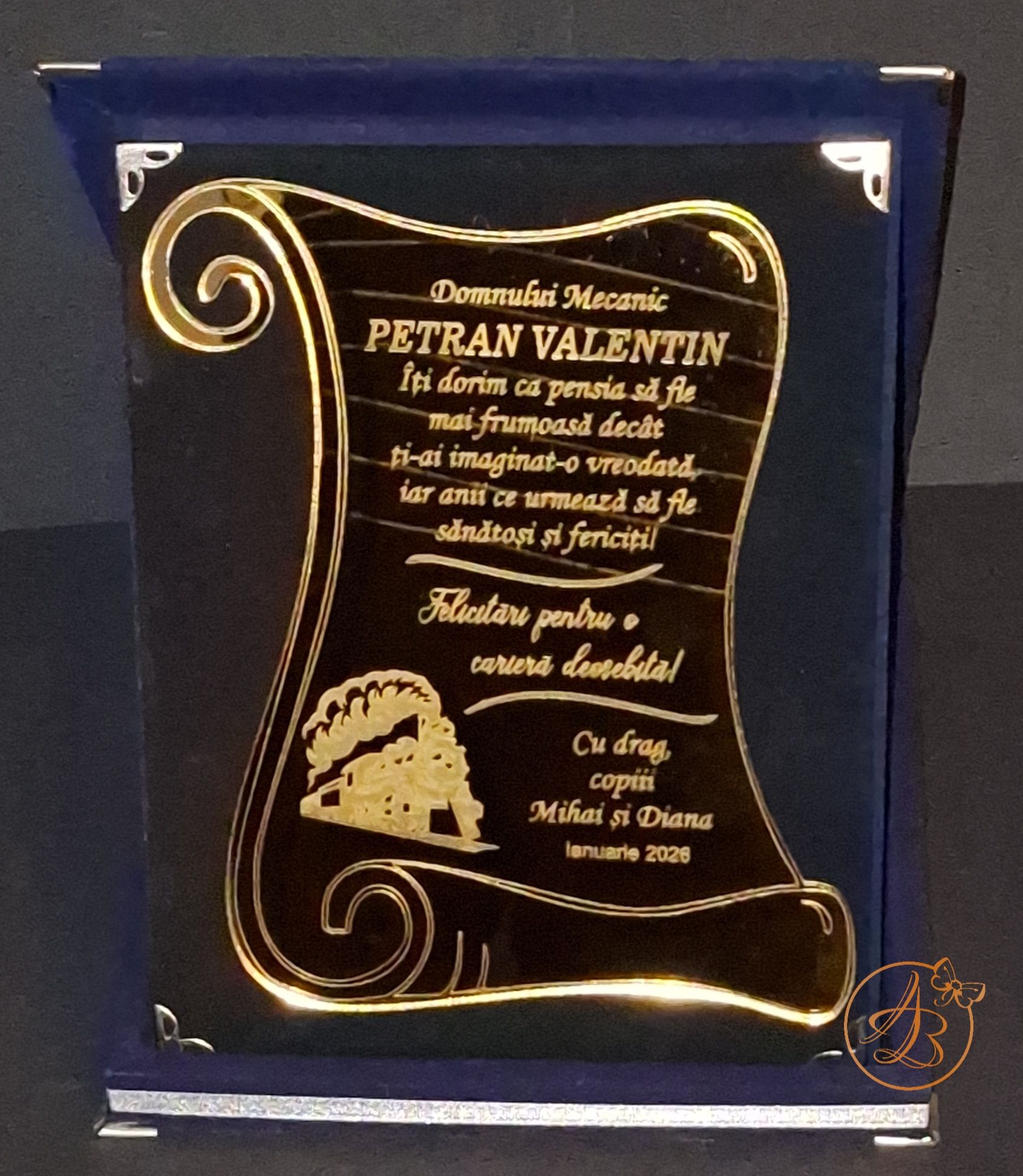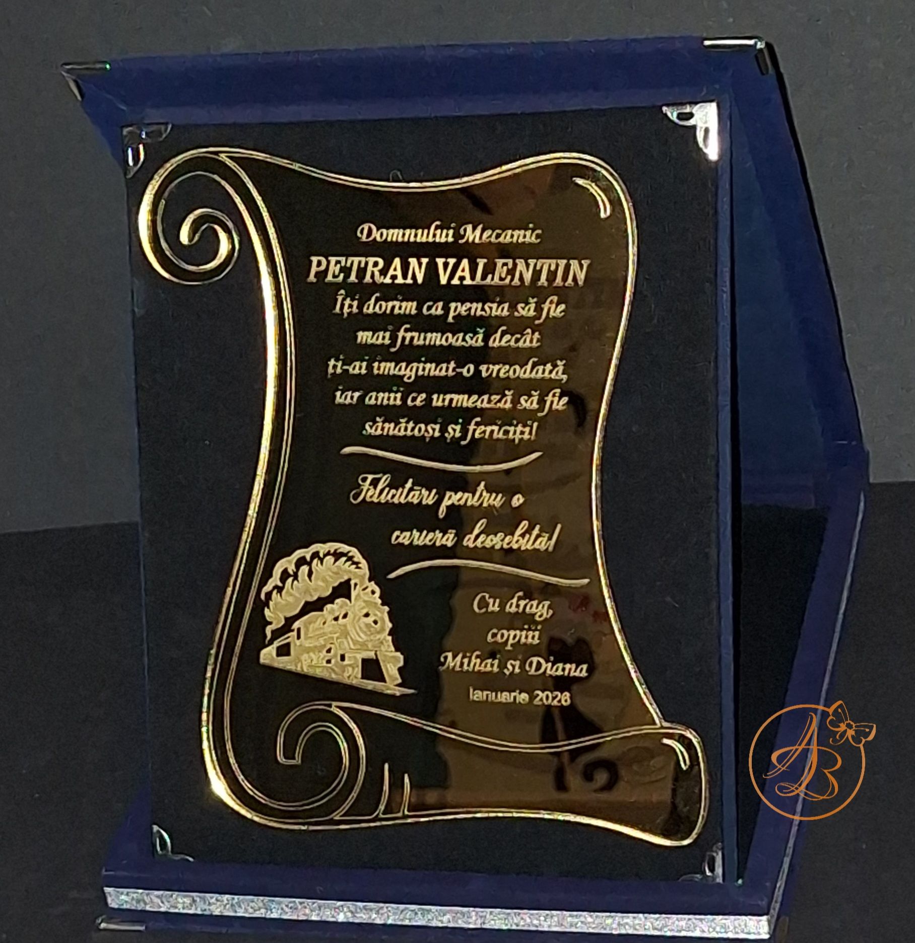 Cutie deosebit de eleganta pentru pensionare, dar se poate darui și la nasi, parinti, rude sau prieteni. Se poate personaliza pentru zi de nastere, zi onomastica, aniversare, pentru orice alt eveniment, ocazie.